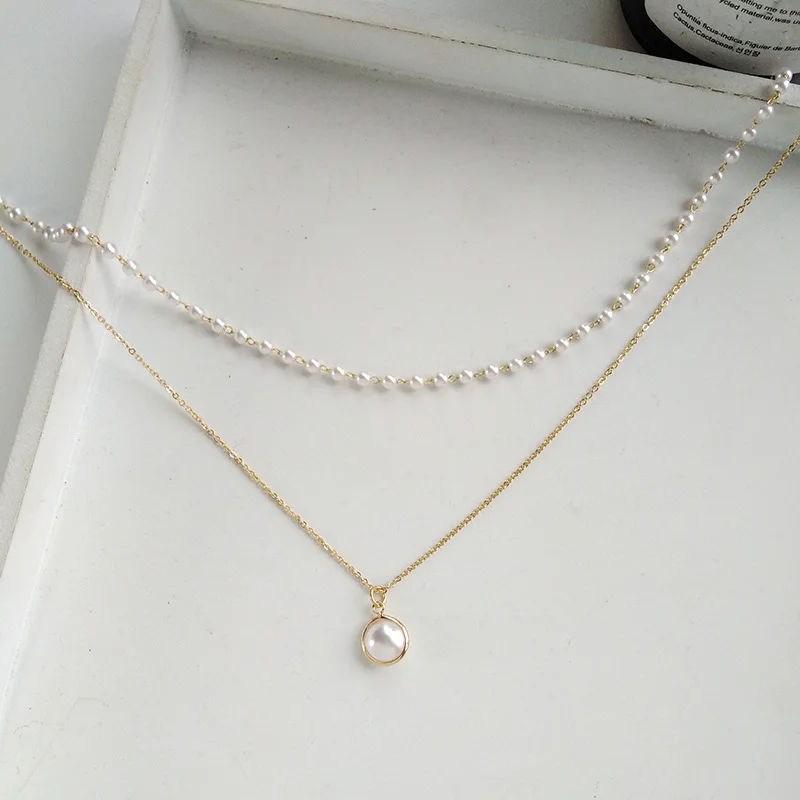 2021 Kpop Imitation Pearl Choker Necklace Cute Double Layer Chain Pendant For Women Jewelry Girl Gift