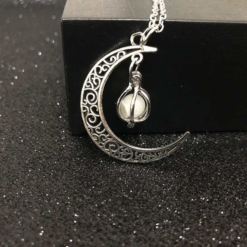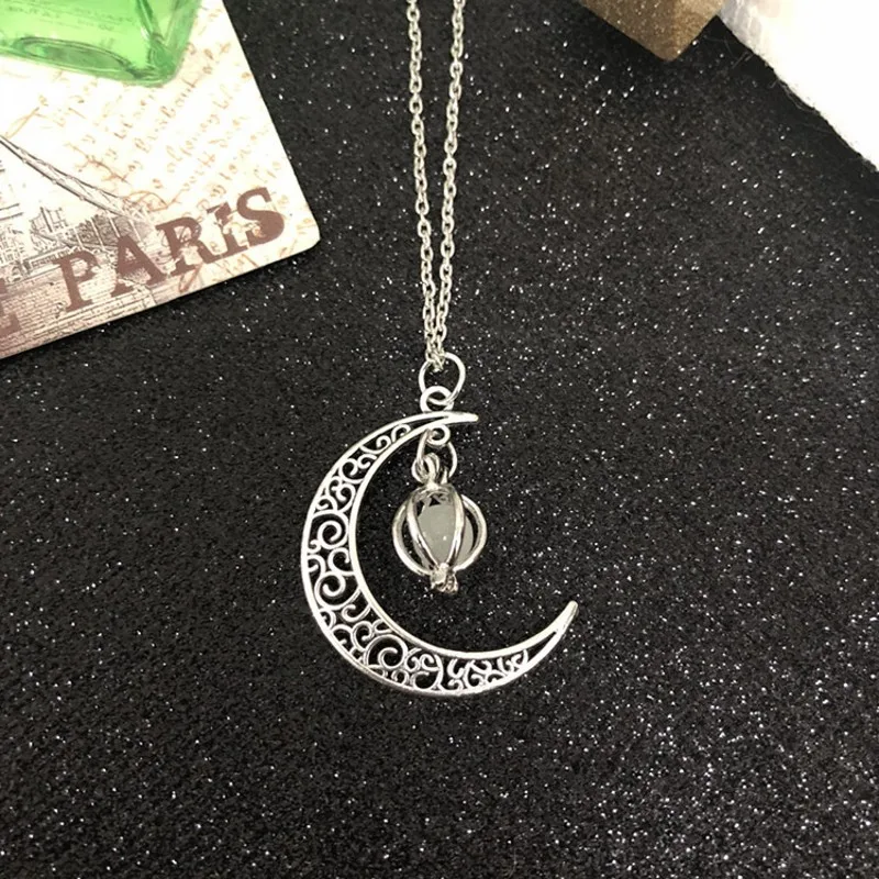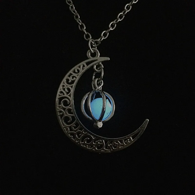 2021 Luminous Gem Stone Moon Pendant Necklaces For Women Men Trendy Vintage Moon Pendant Necklace Jewelry Gifts