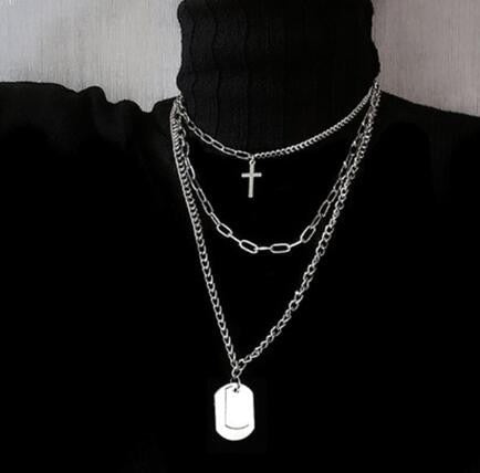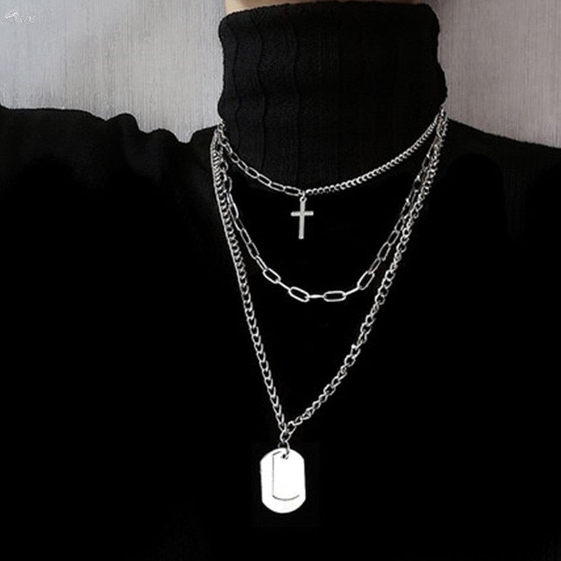 2021 Multilayer Hip Hop Long Chain Necklace For Women Men Jewelry Gifts Key Cross Pendant Necklace Accessories