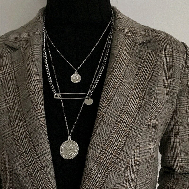 2021 Personality Cross Square Metal Multilayer Hip Hop Long Chain Cool Simple Necklace For Women Men Jewelry Gifts