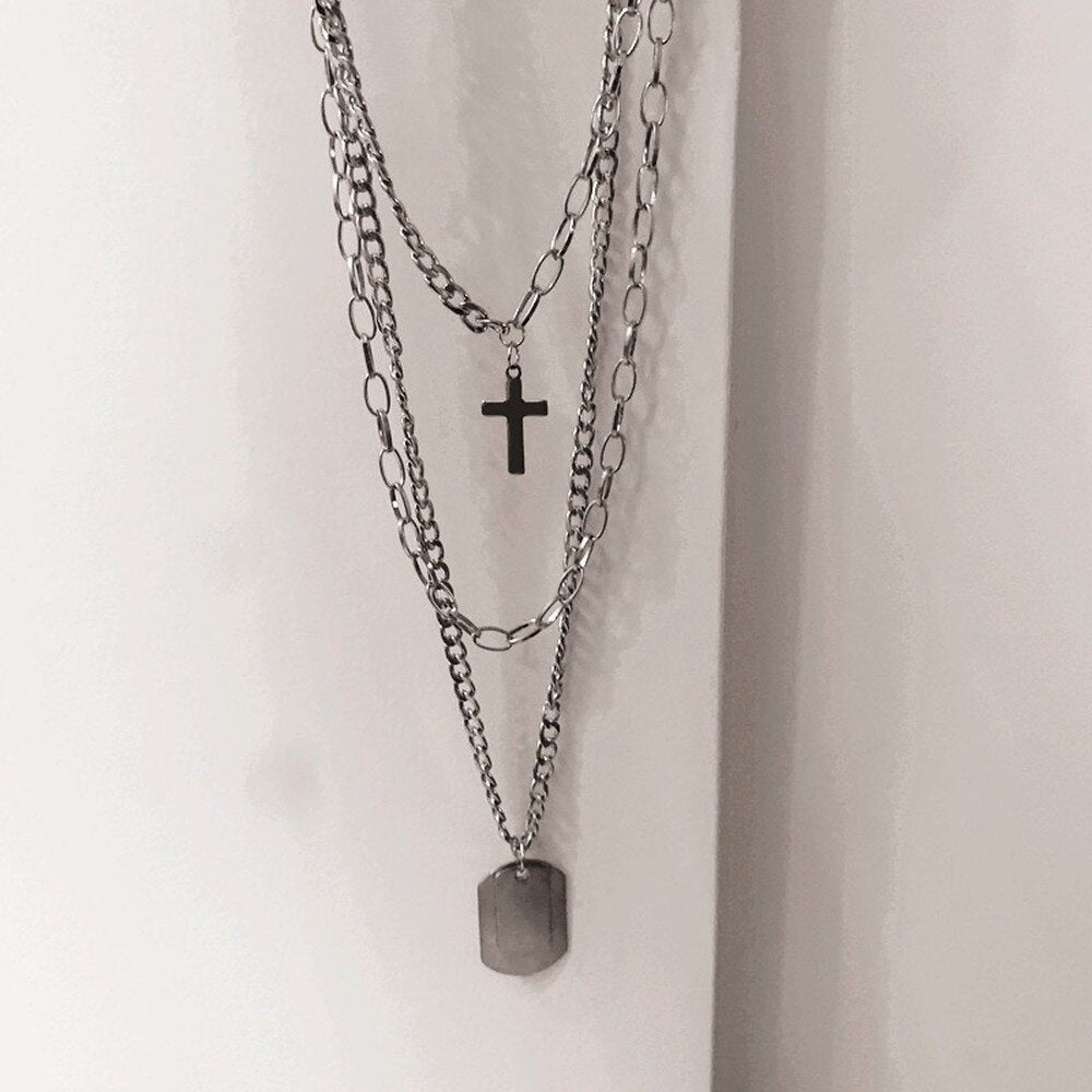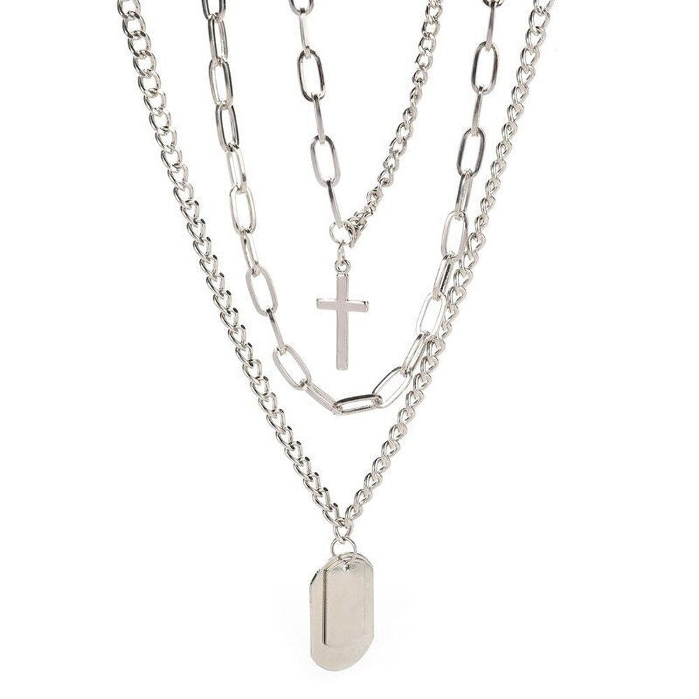 2021 Personality Cross Square Pendant Multilayer Hip Hop Long Chain Cool Simple Necklace for Women Men Jewelry Gifts