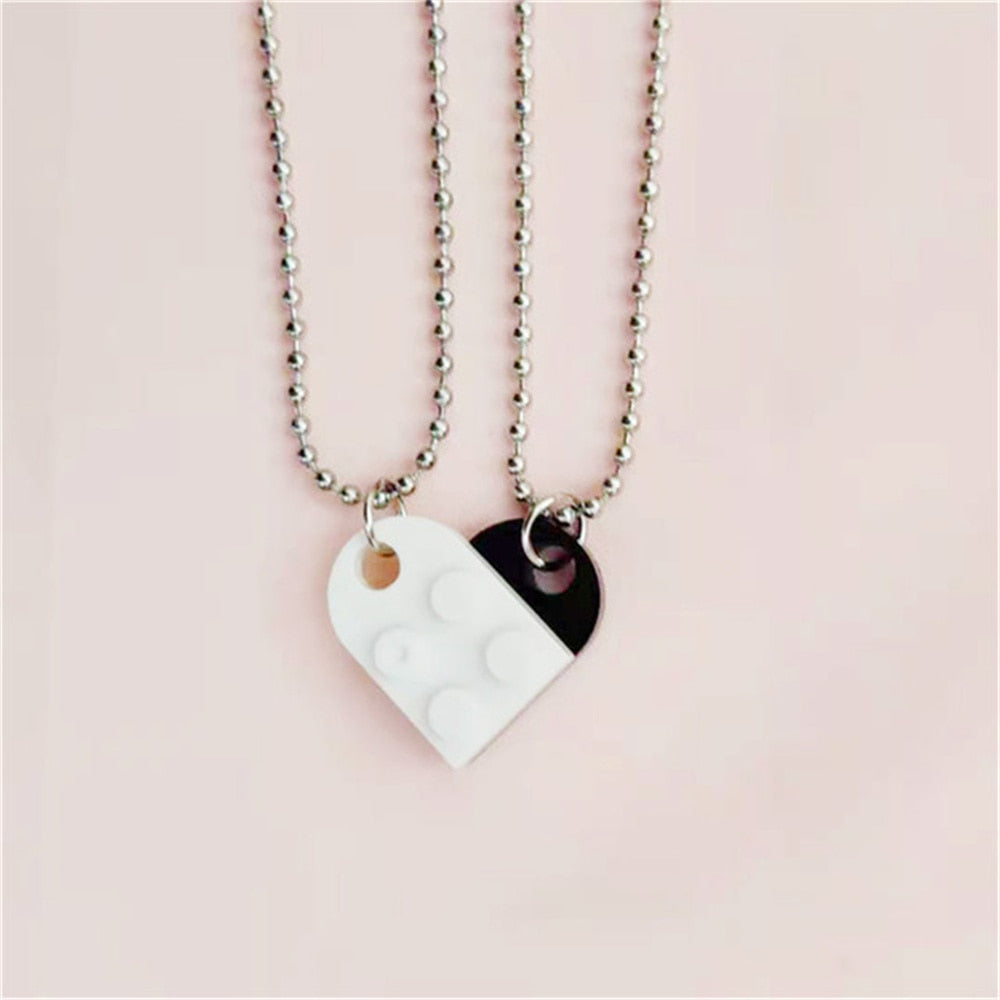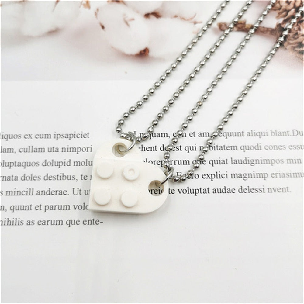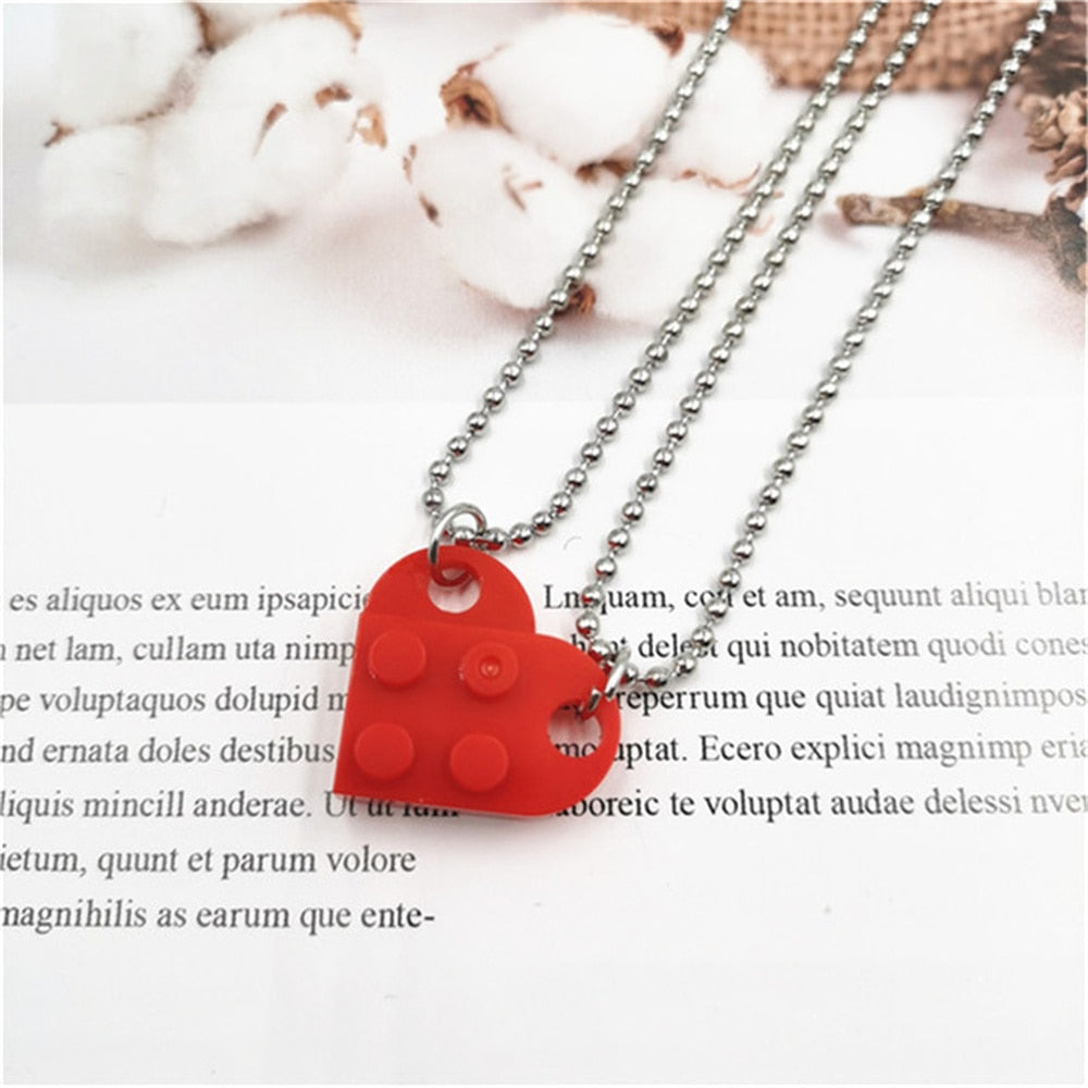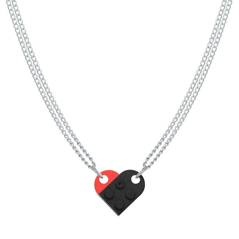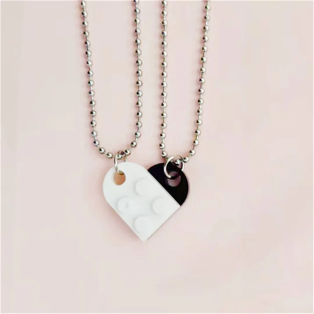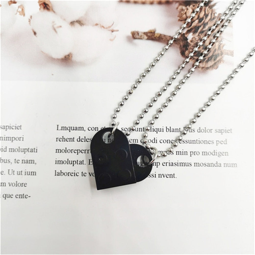 2021 Punk 2Pcs Heart Brick Couples Love Necklace For Lovers Women Men Elements Friendship Necklaces Valentines Gift Jewelry
