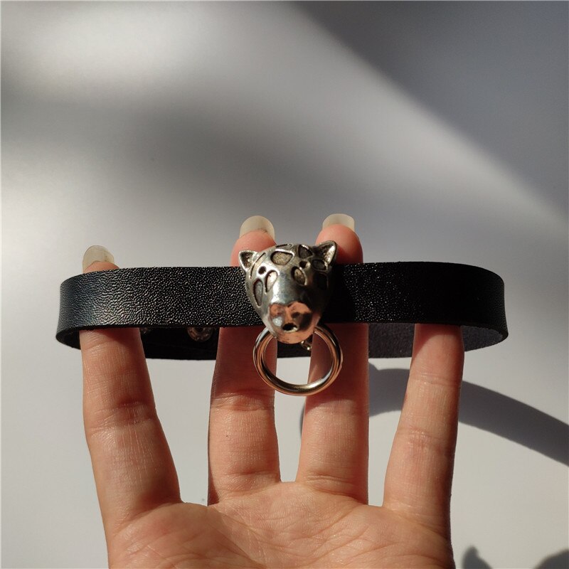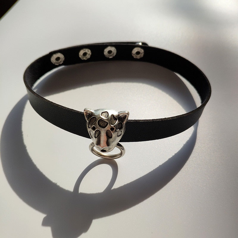 2021 Punk Harajuku Collar Necklace Heart PU Leather Leopard head Choker Punk Goth Handmade Rivets Neck Jewelry