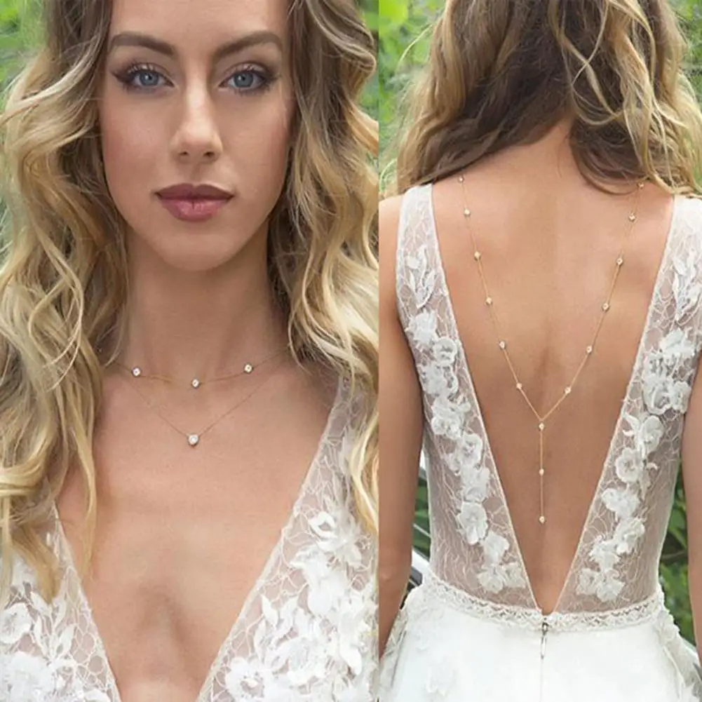 2021 Rhinestone Inlaid Long Drop Bridal Back Necklace Lady Body Chain Wedding Jewelry necklace for women бижутерия для женщин