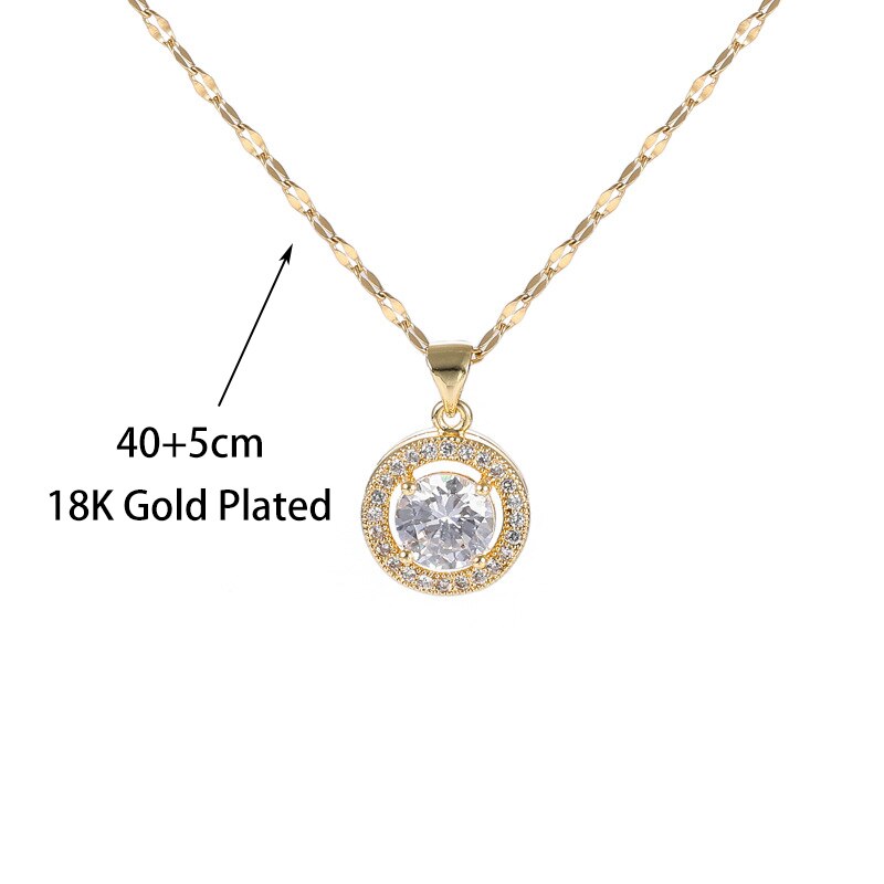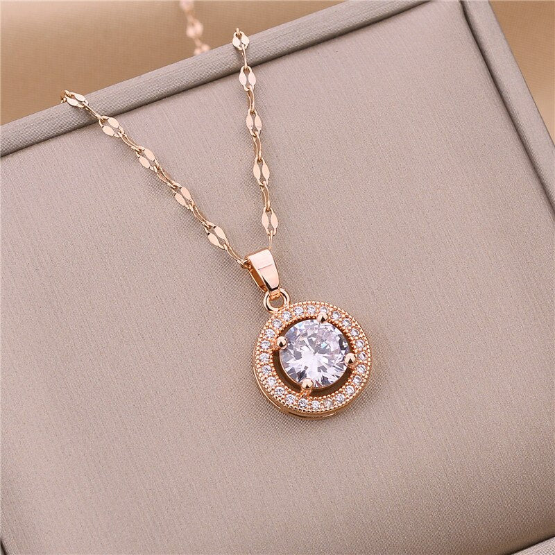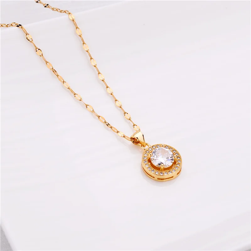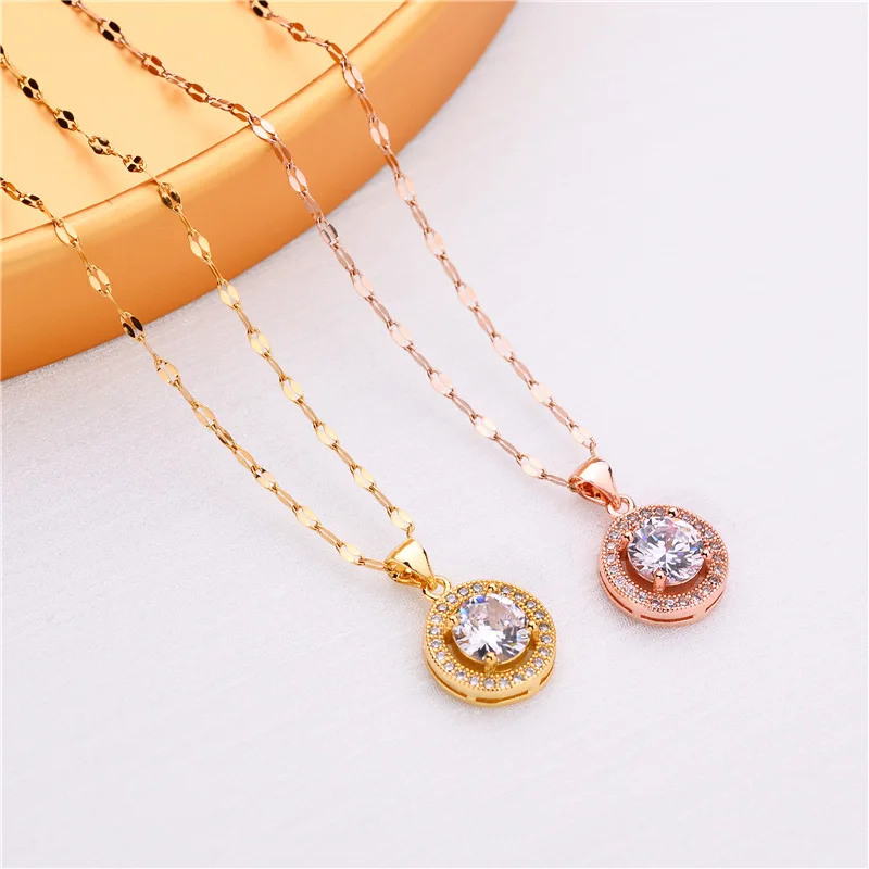 2021 Romantic Crystal Inlaid Round Zircon Pendant Women Necklace Ladies Stainless Steel Jewelry Female Clavicle Chain