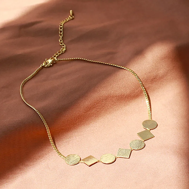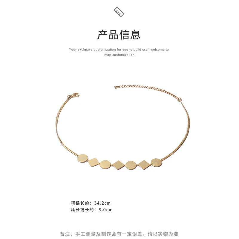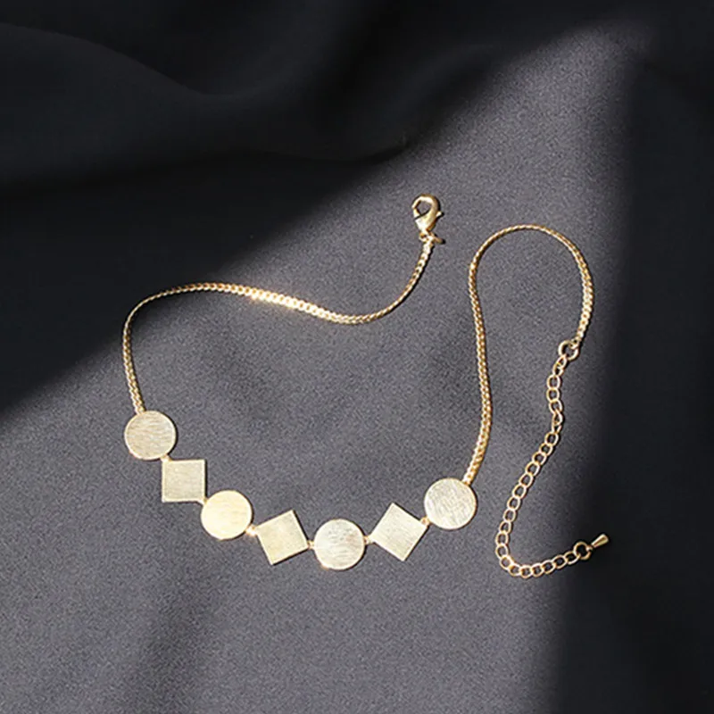 2021 Simple Fshion Geometric Square Round Pendant Gold Color Metal Necklace for Women Girls Chic Jewelry Accessories