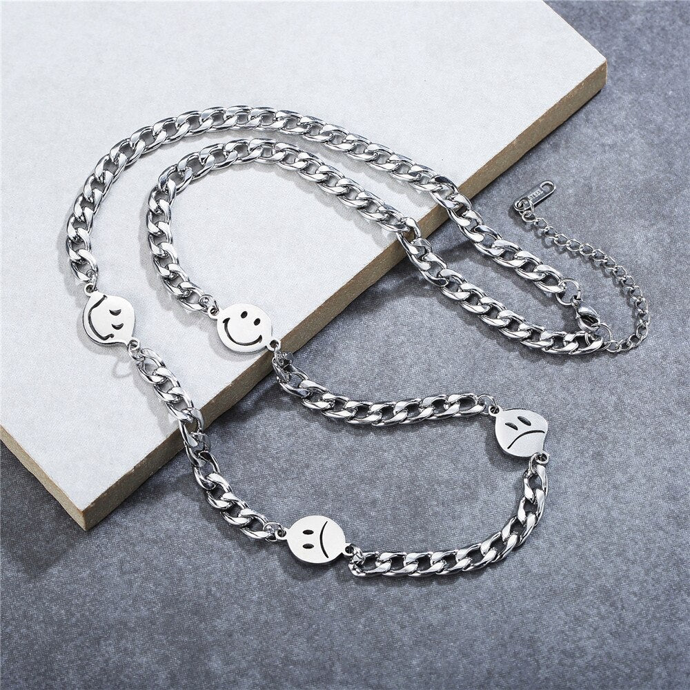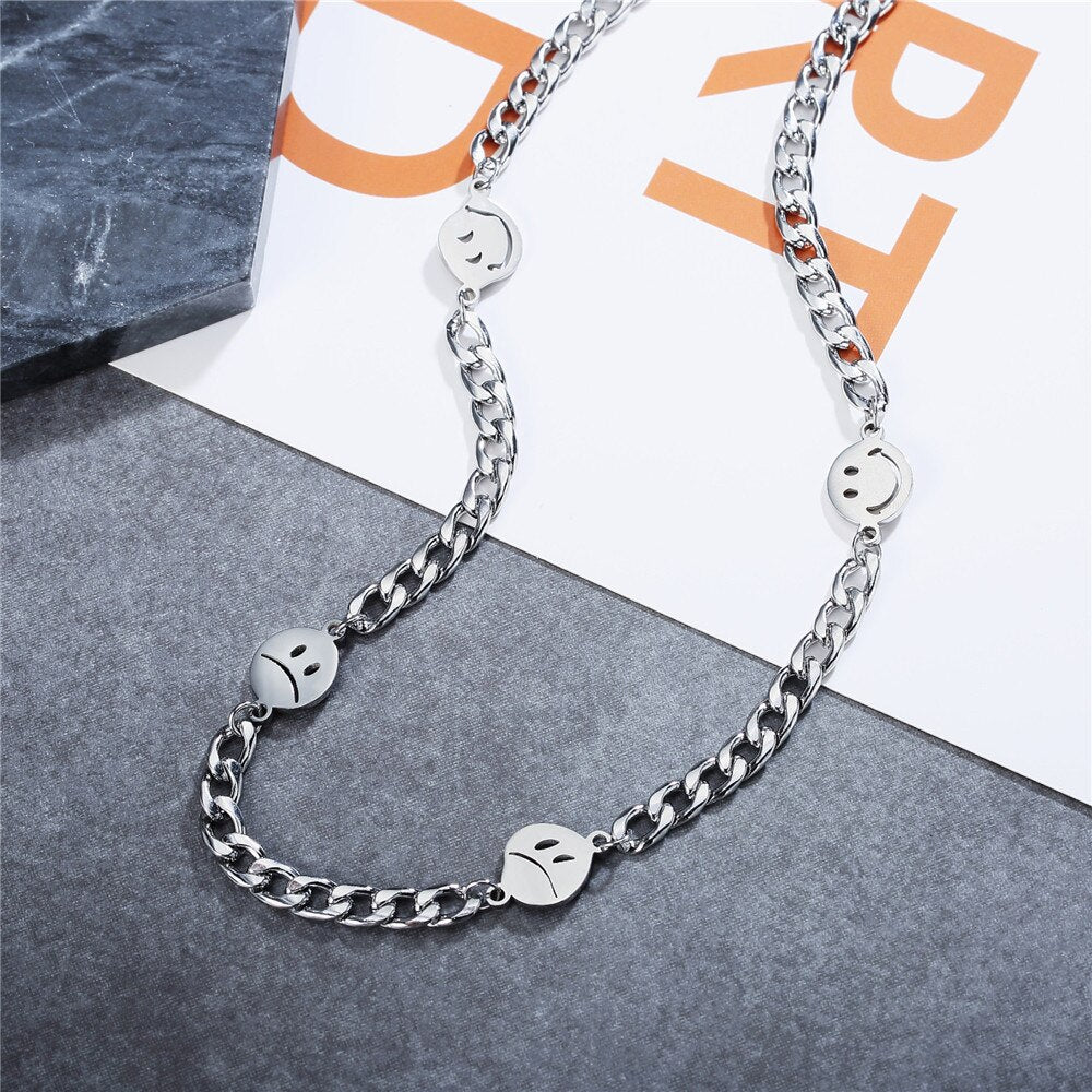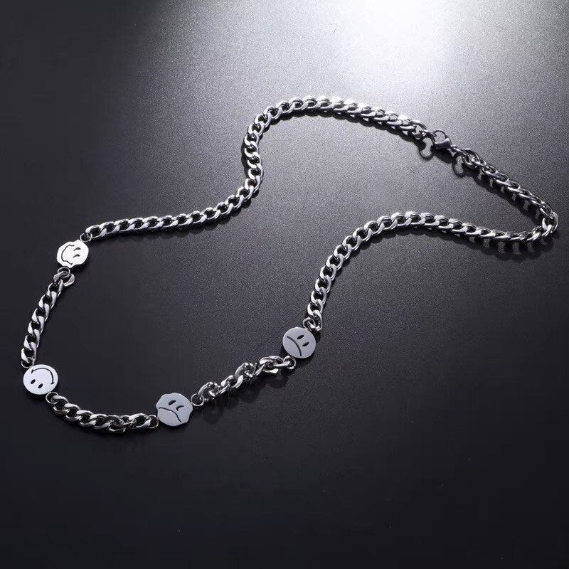 2021 Stainless Steel Smiley Face Necklace For Man Female Sense Trend Hip-hop Expression Pendant Accessory Daily Wear Not Fade