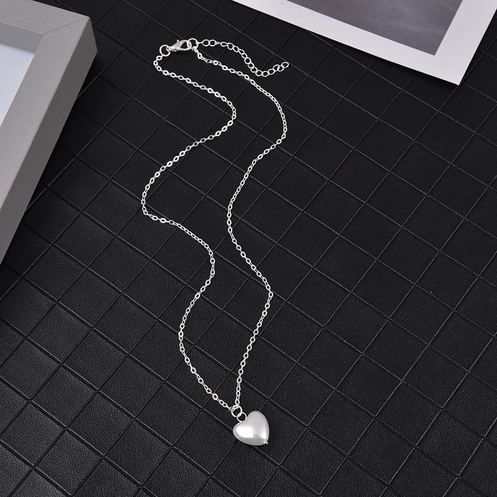 2021 Sweet Girls Elegant Heart Necklace Imitation Pearl Necklace For Women Students Party Choker Jewelry Gifts