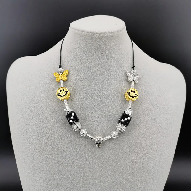 2021 trend hip hop rock necklace smiley skull head versatile unisex suitable for holiday party gifts