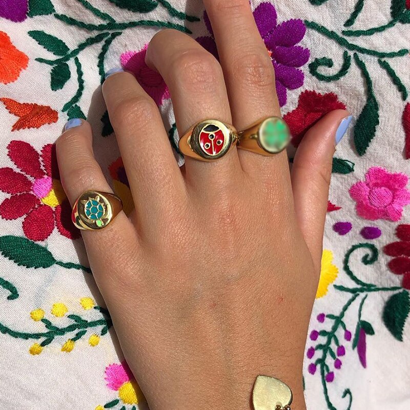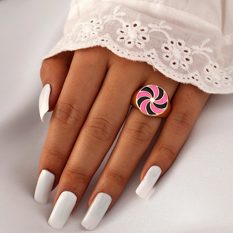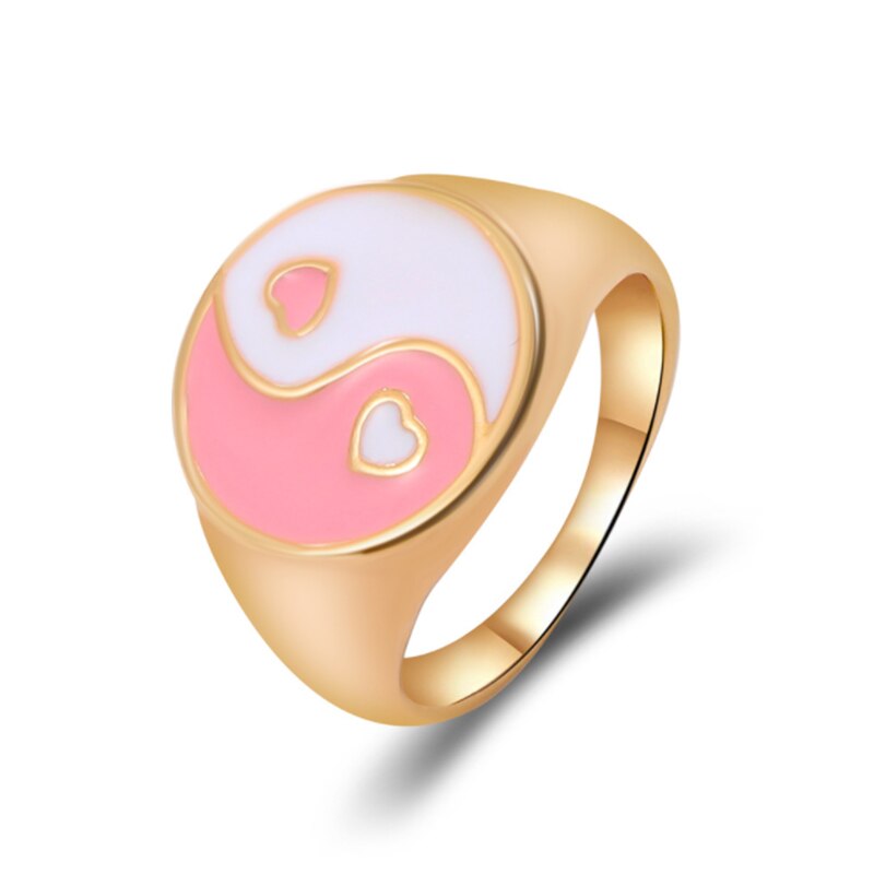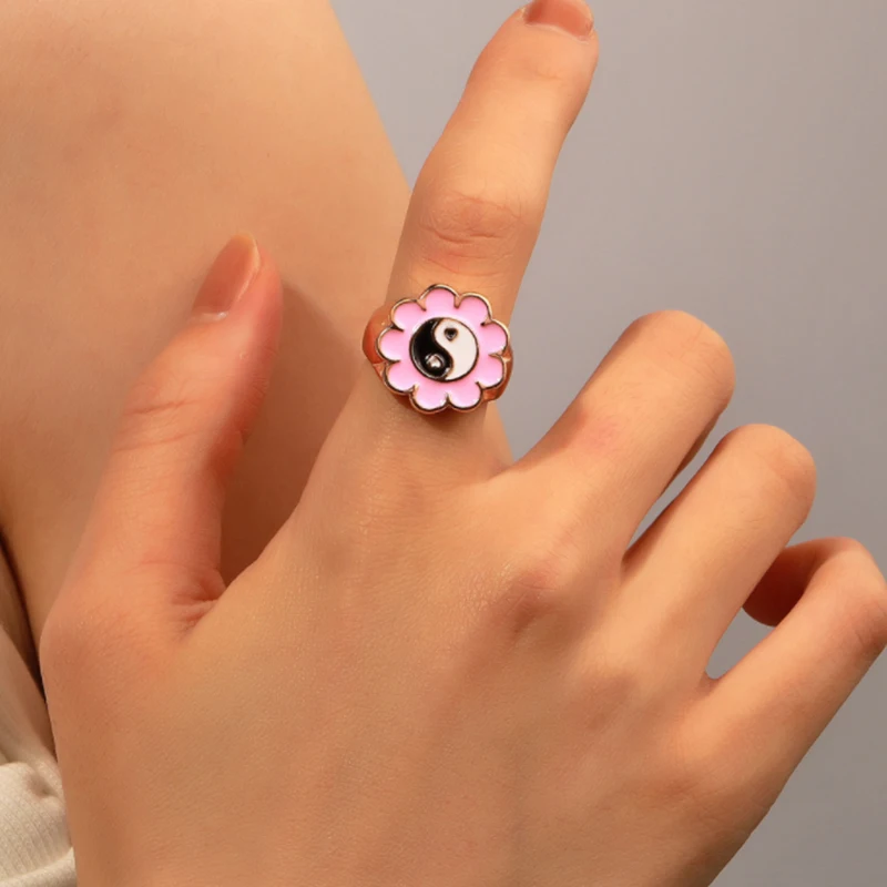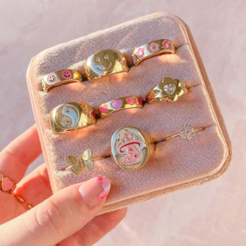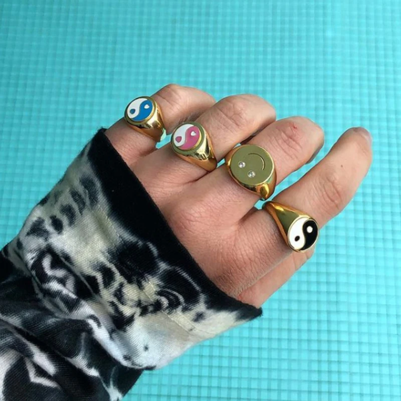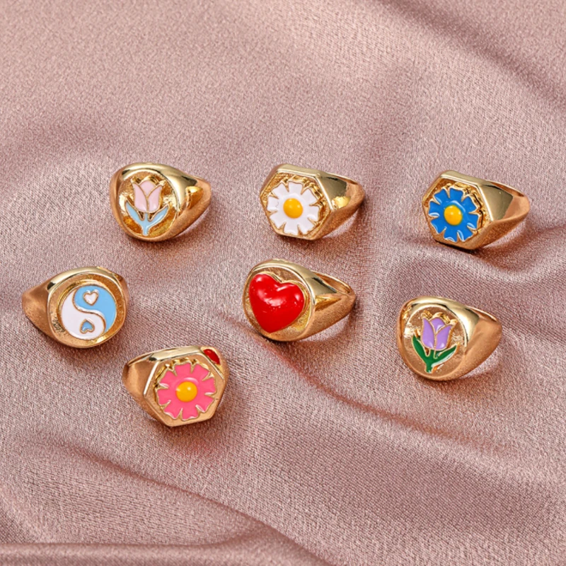2021 Trendy Chunky Stacked Rings Cute Enamel Heart Butterfly Tai Chi Geometry Rings Wonderful Choice for Women Jewelry