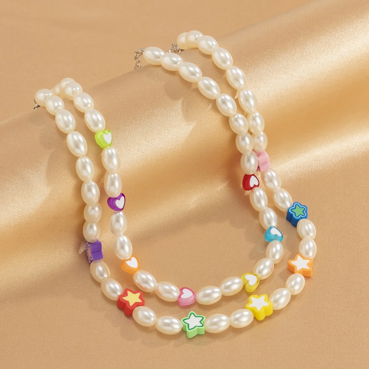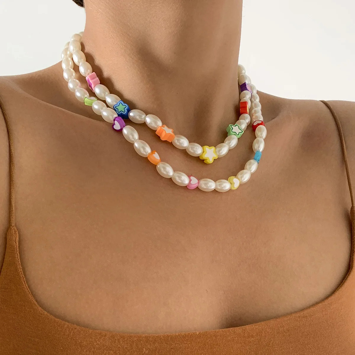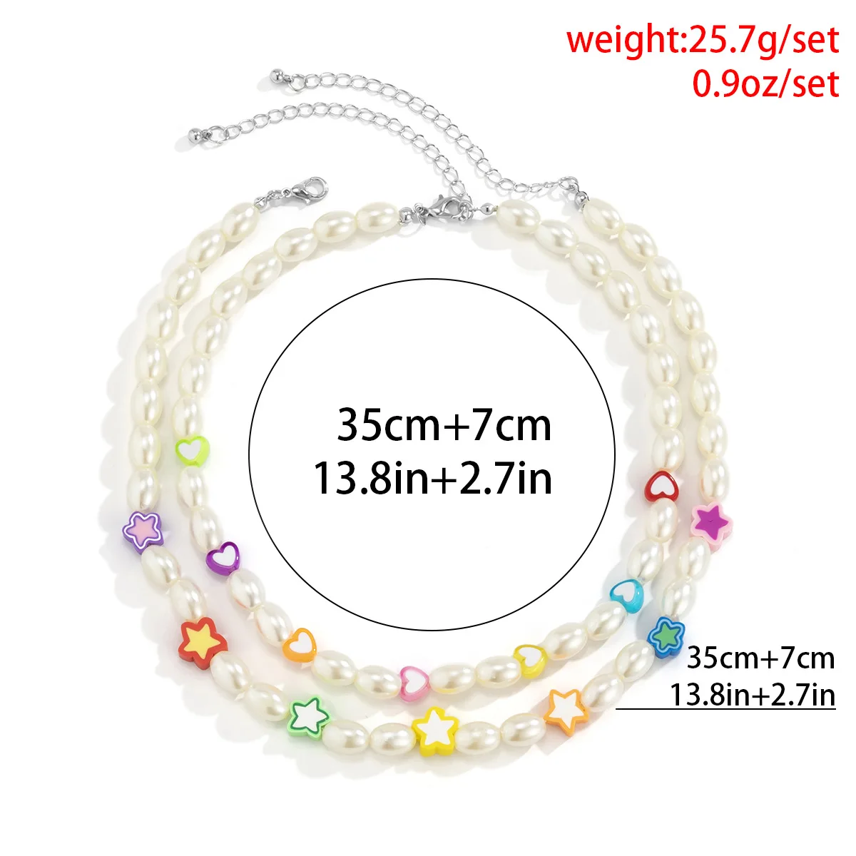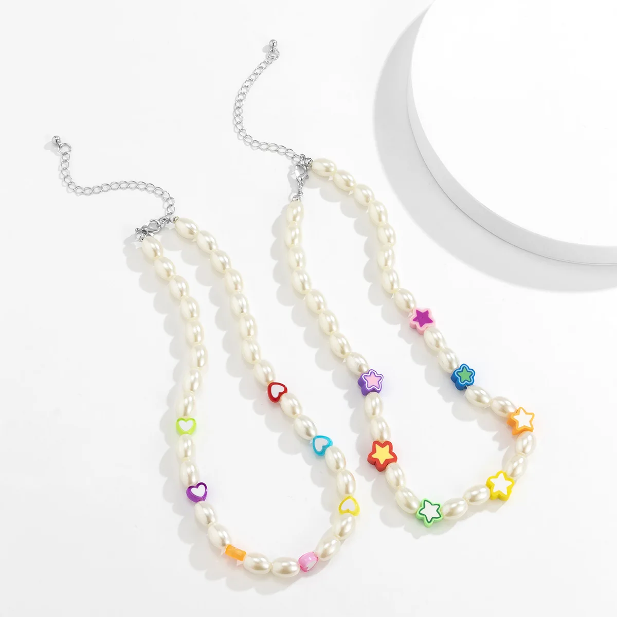 2021 Trendy Imitation Pearl Beaded Acrylic Colorful Star Heart Round Necklace for Women Girls Jewelry Accessories