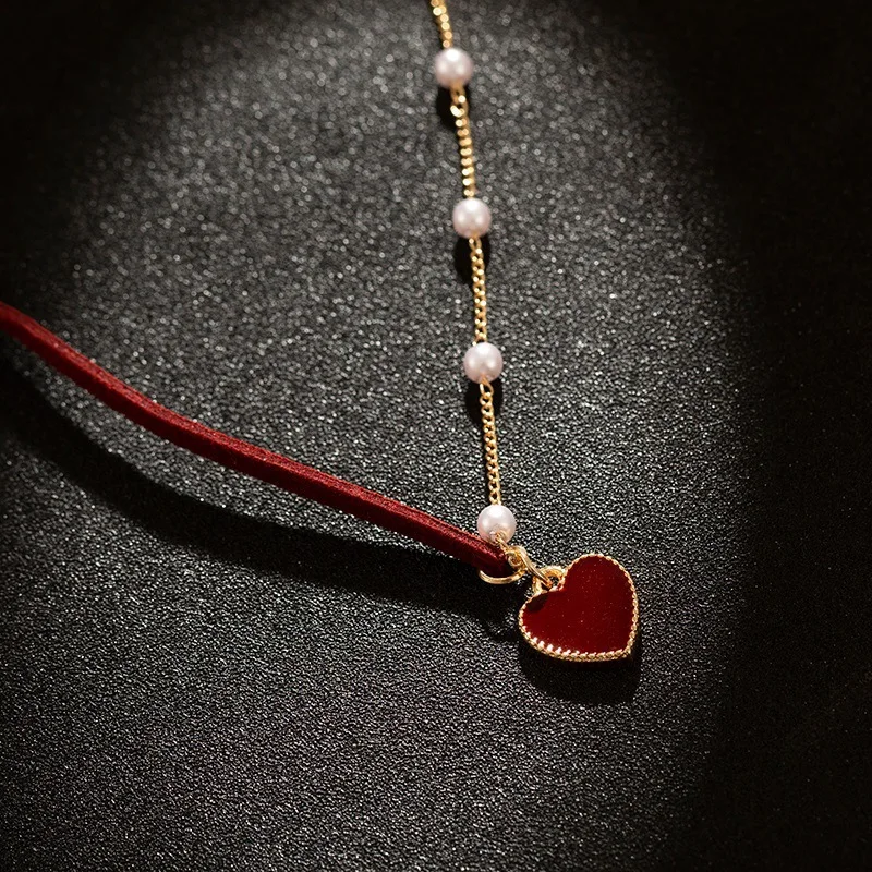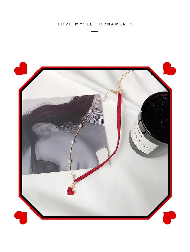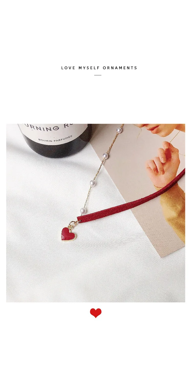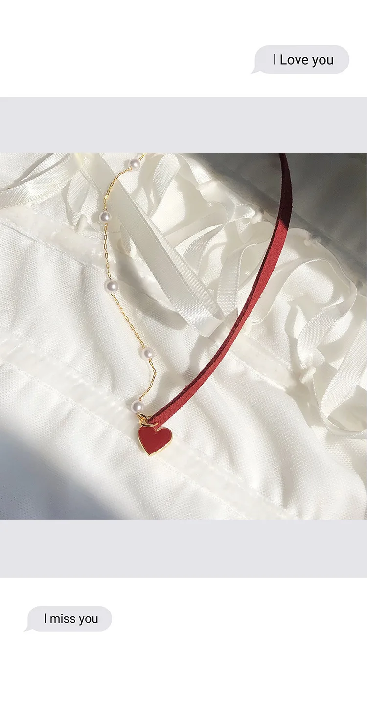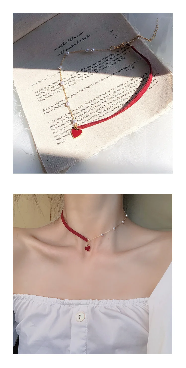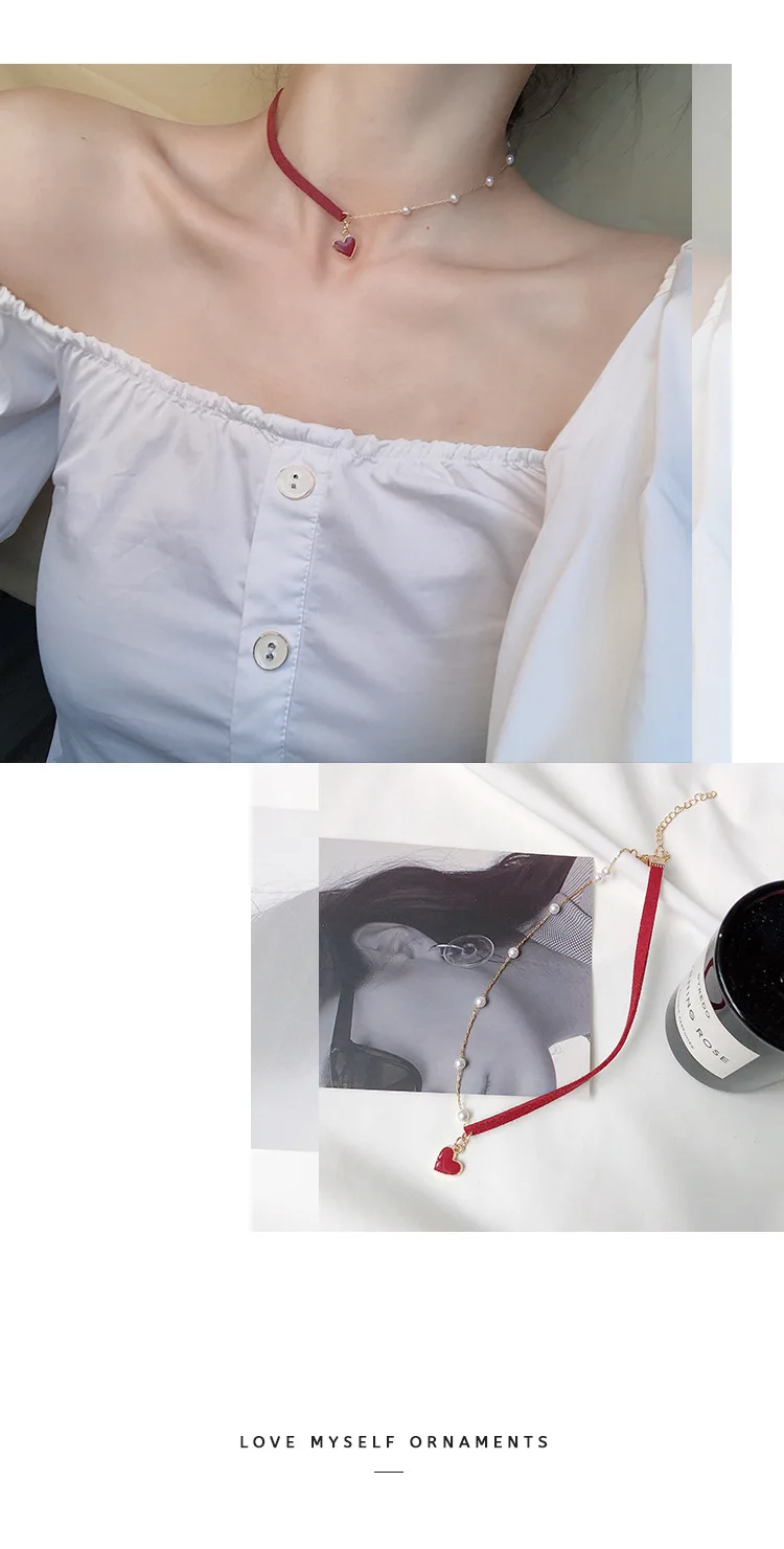 2021 Trendy Red Heart Choker Romantic Necklace for Women Girls Friends Jewelry Gifts Kpop Pearl Necklaces Colar Bijoux Femme