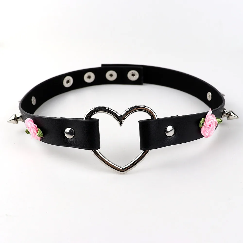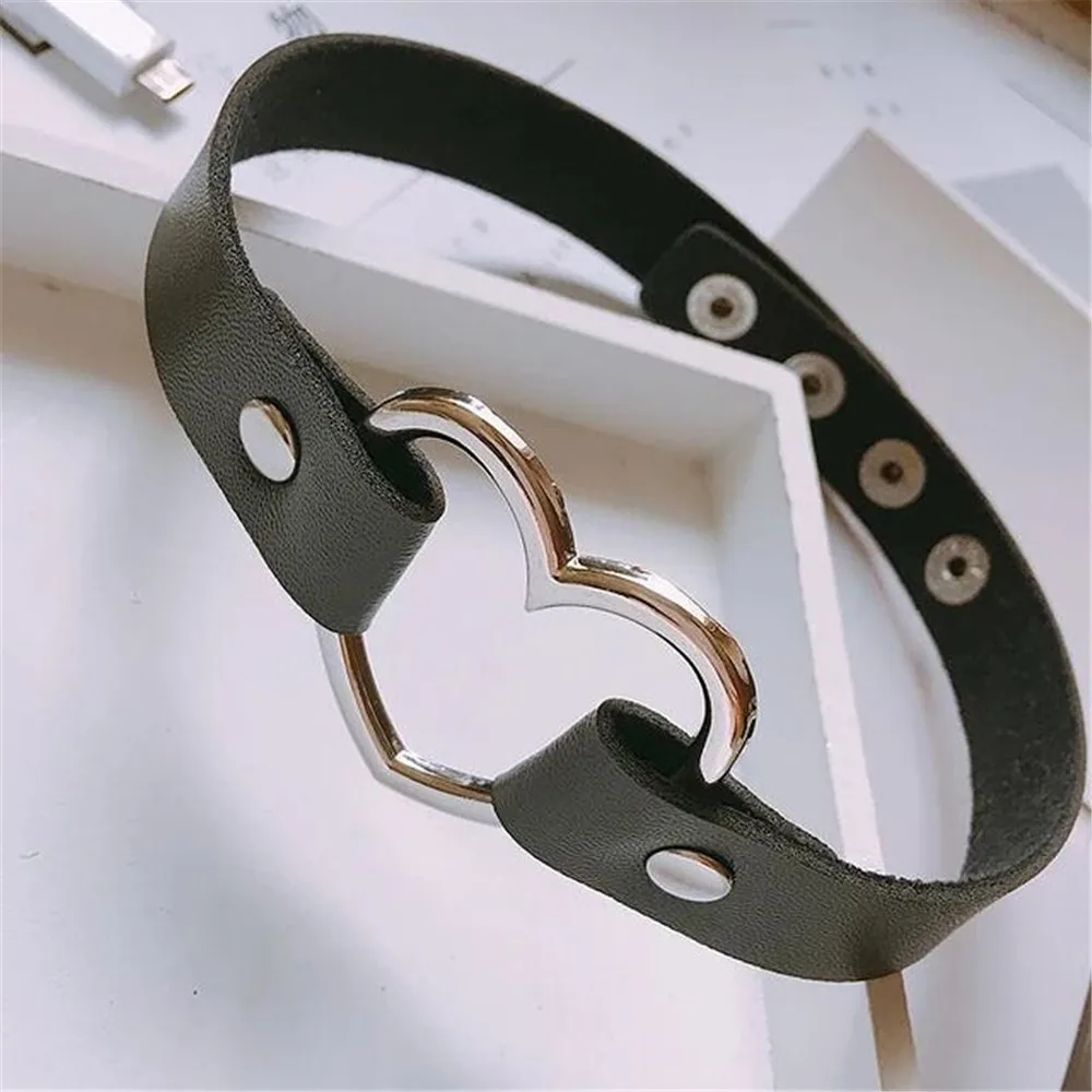 2021 Trendy Simple Heart Choker Necklace PU Leather Colorful Collar Punk Gothic Women Jewelry Handmade Harajuku Party Club 2021