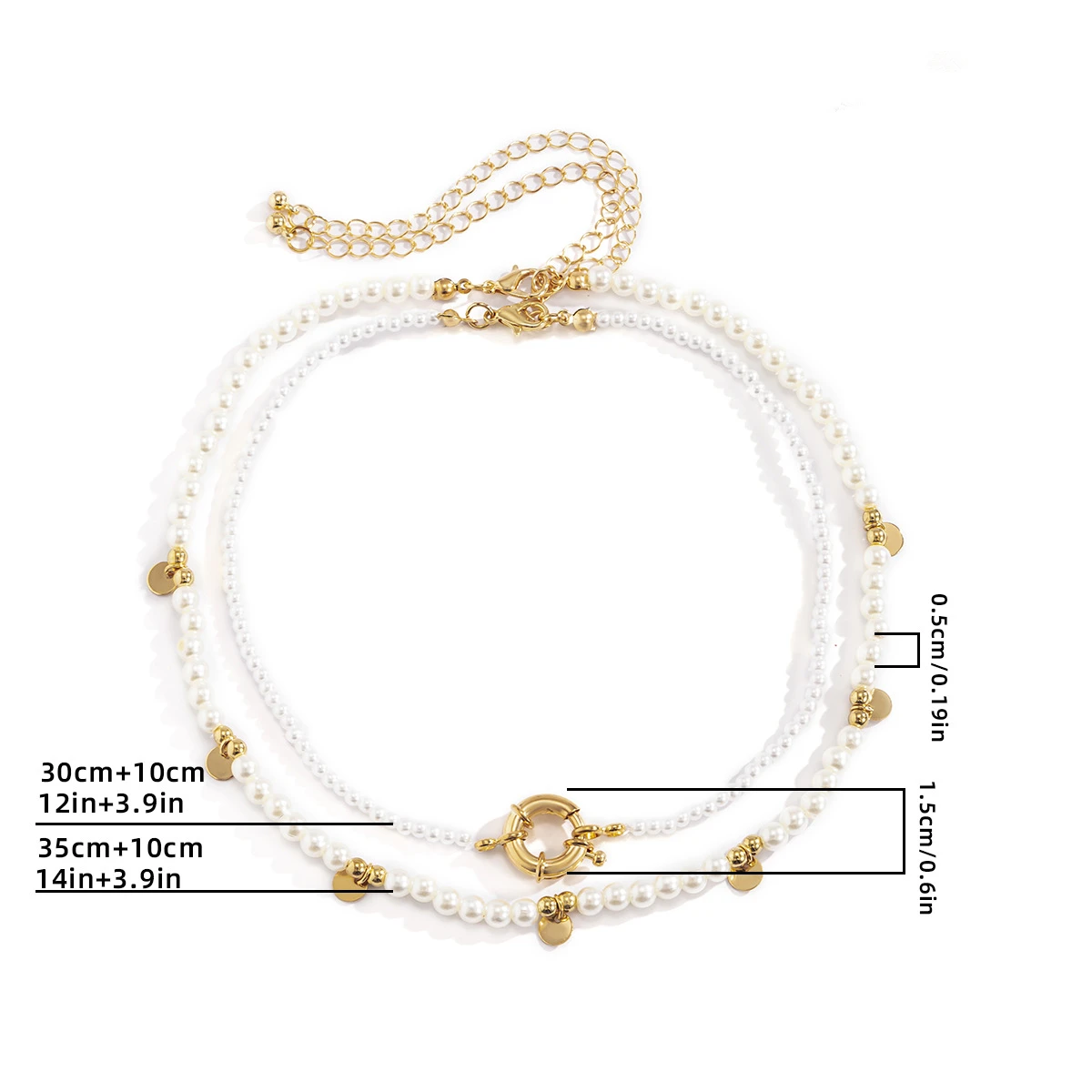 2021 Vintage Temperament Imitation Pearl Bead Geometric Round Double-layer Necklace for Women Girls Wedding Party Jewelry Gifts