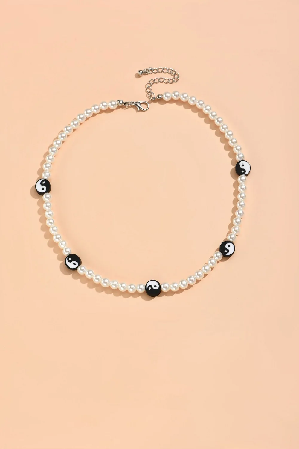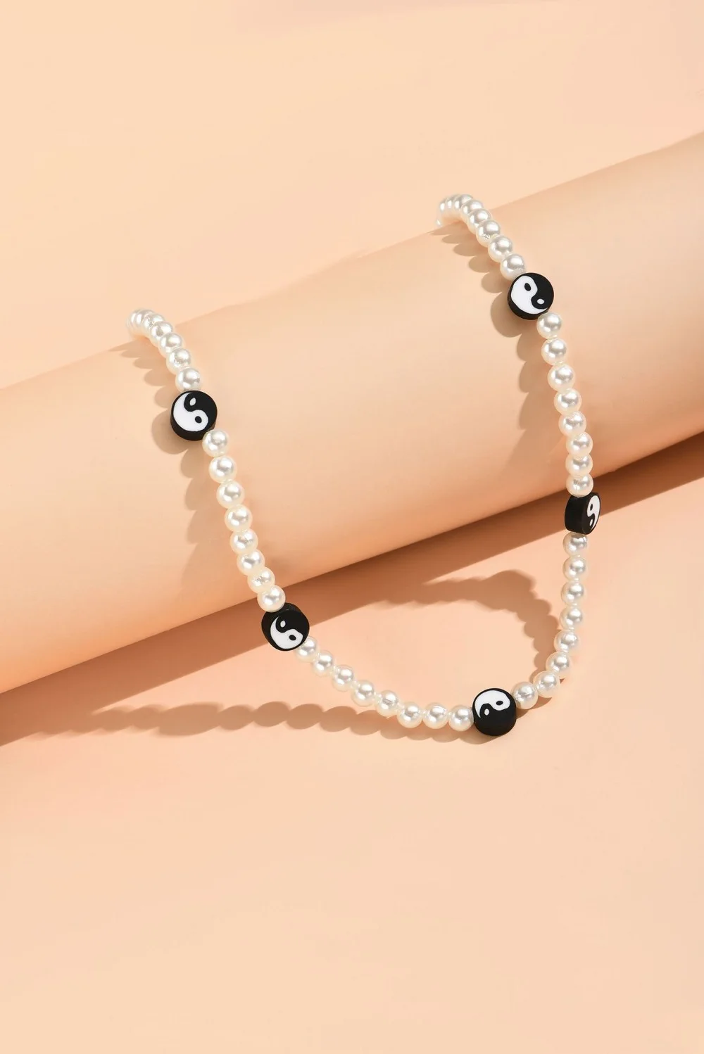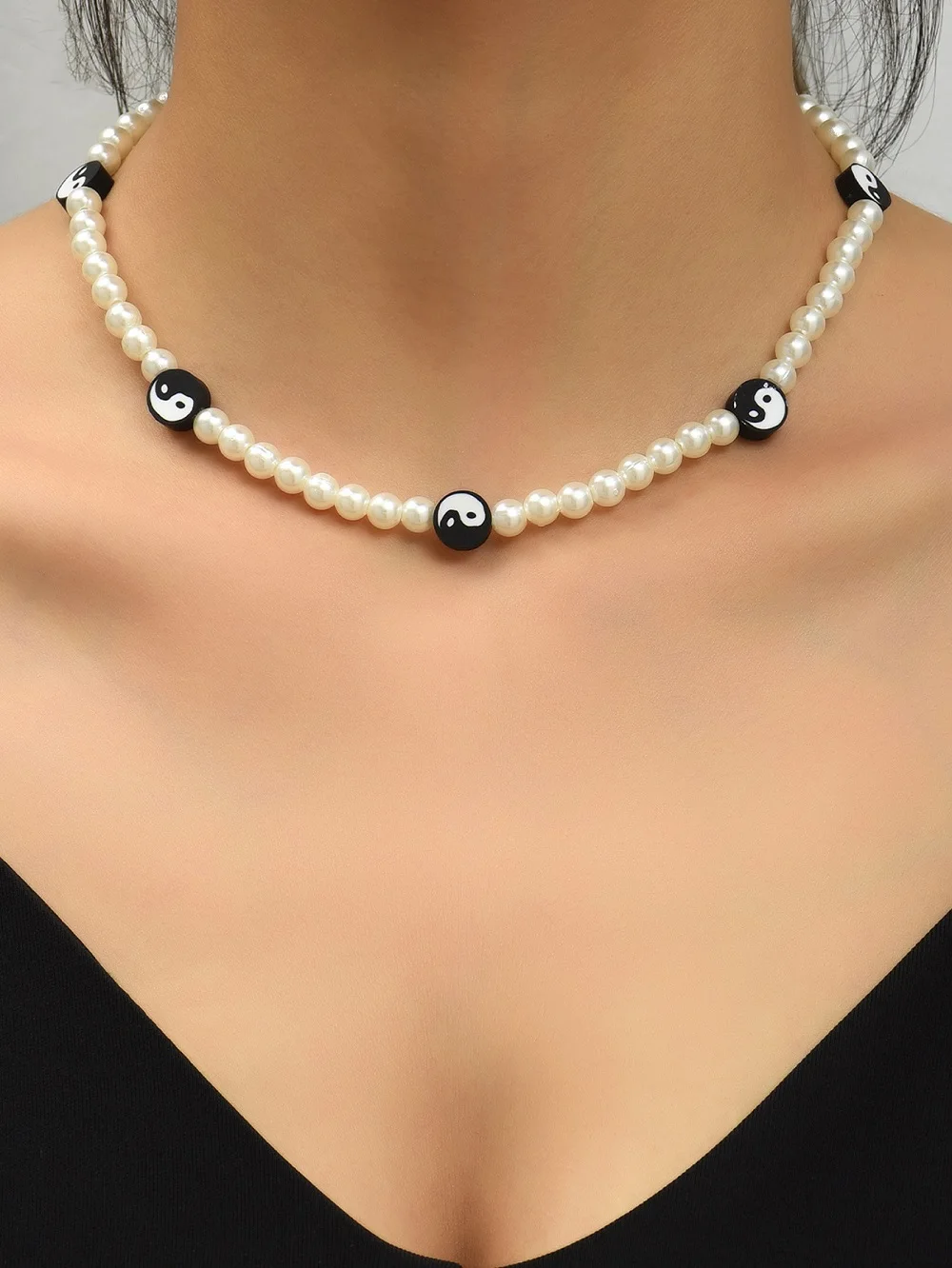 2021 White Lmitation Pearl Choker Necklace Round Tai Chi Ying Yang Pendant Necklace for Women Charm Beaded Jewelry
