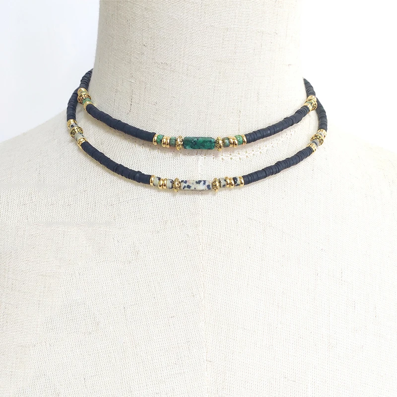 2021 Winter Ethnic Style Silicone Necklace Natural Stone Pendant Choker Soft Ceramic Surfer Necklace Tribal Jewelry Gifts