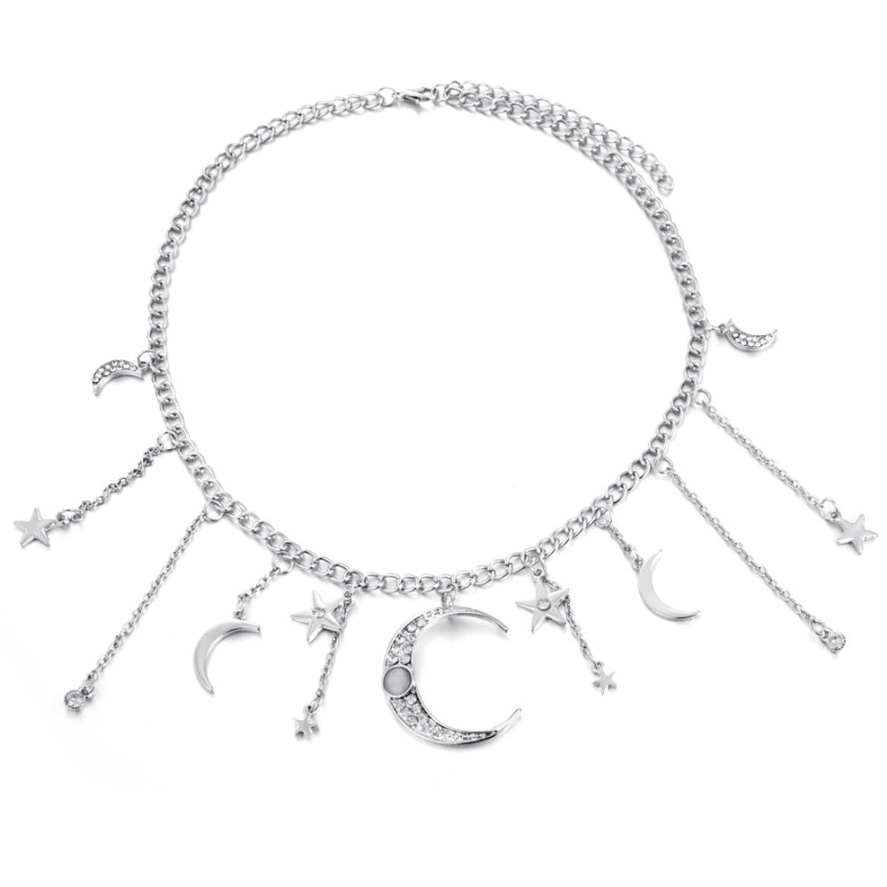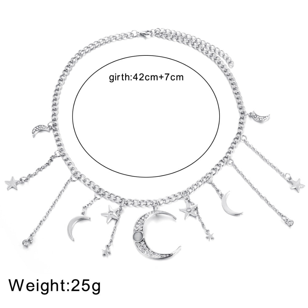 2021 Women Bling Cubic Zirconia Christmas Gift Moon Star Drop Charm Chocker Choker Statement Necklace Necklace