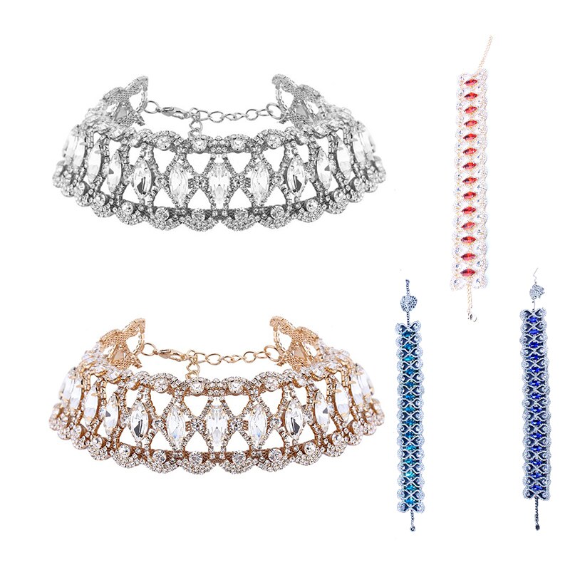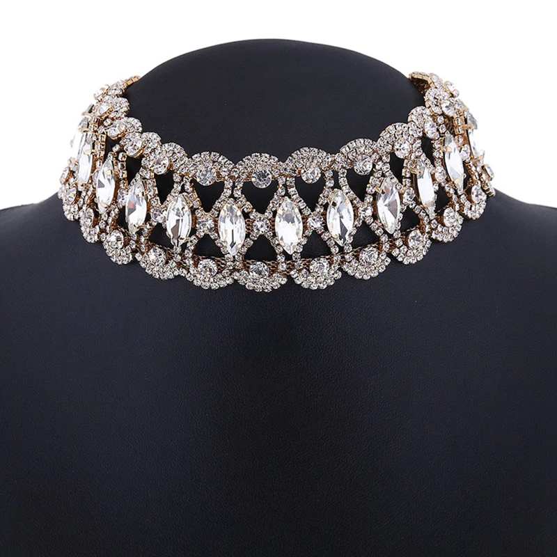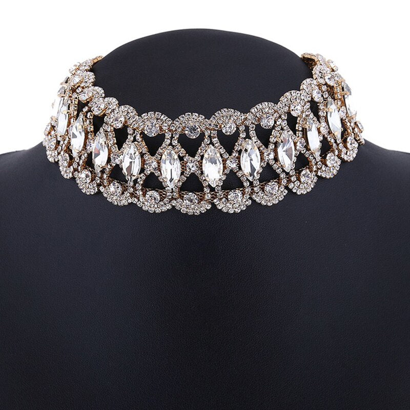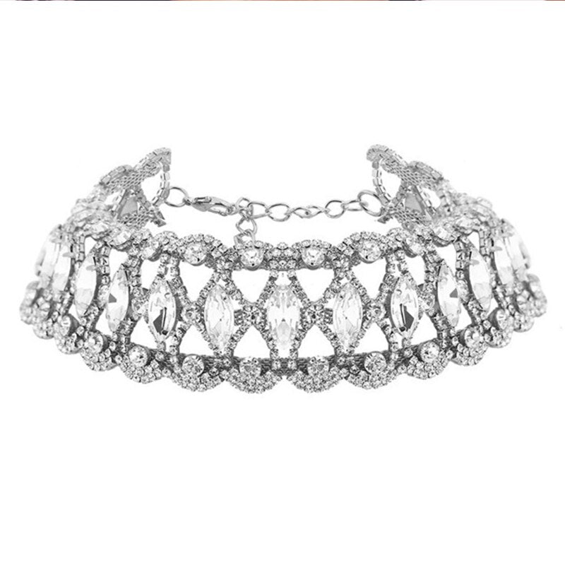 2021 Women's Neck Clavicle Rhinestone Necklace Glitter Chokers Retro Aesthetic Accessories For Women's Gold Silver Plated