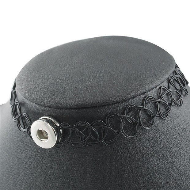 2021 Xinnver Snap Jewelry Fit 12mm 18mm Snap Buttons Elasticity Black Punk Chokers Necklaces For Women Gift ZG083