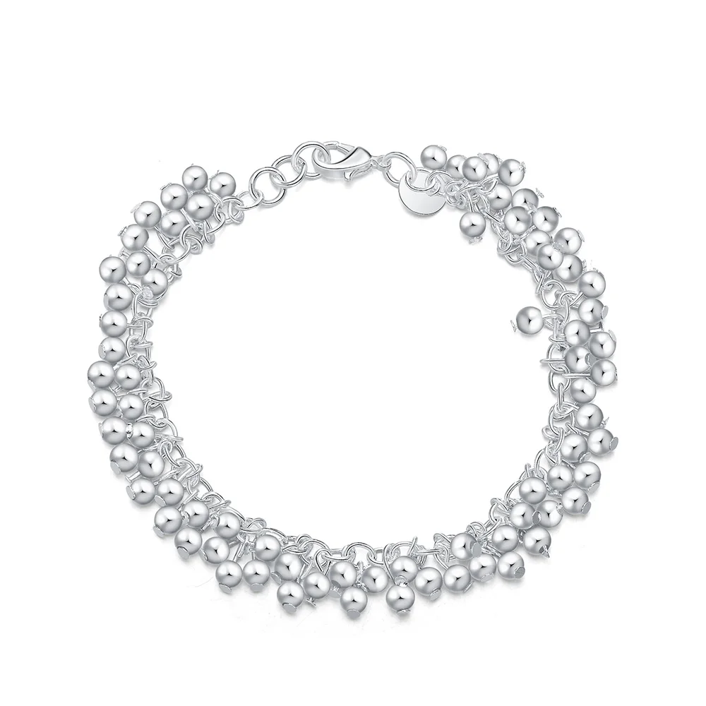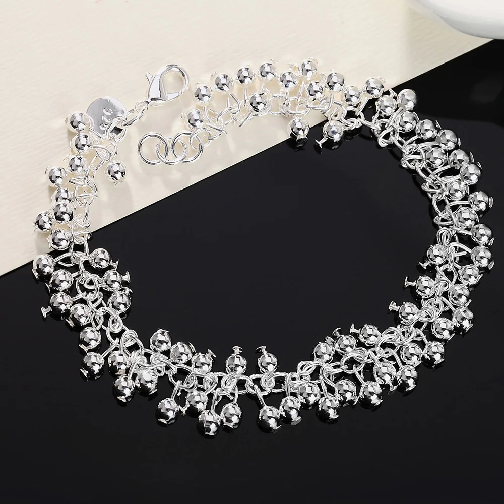 2022 925 Stamp Silver Color ball Bracelet Chain Link women Fine charm Lucky Cuff bangle Christmas