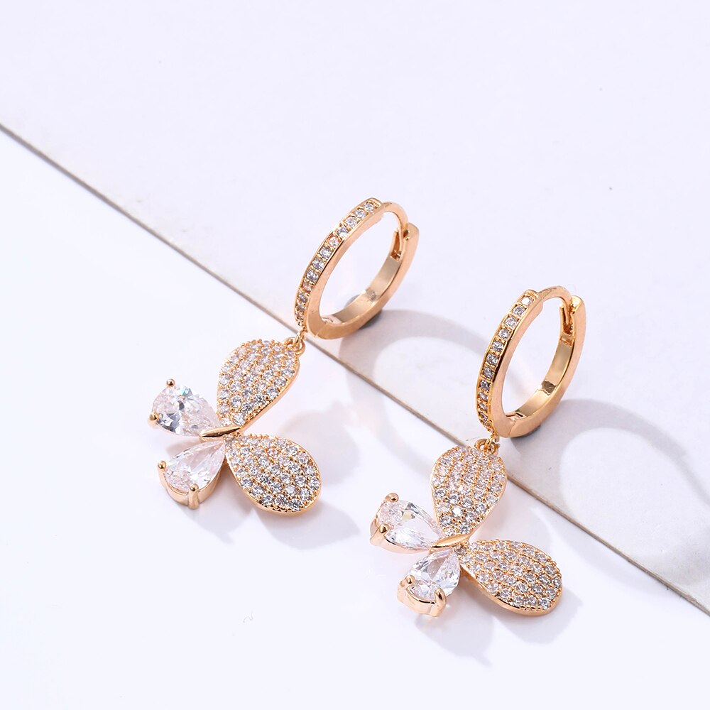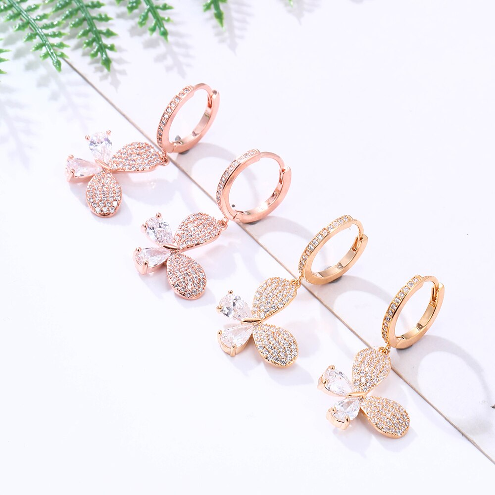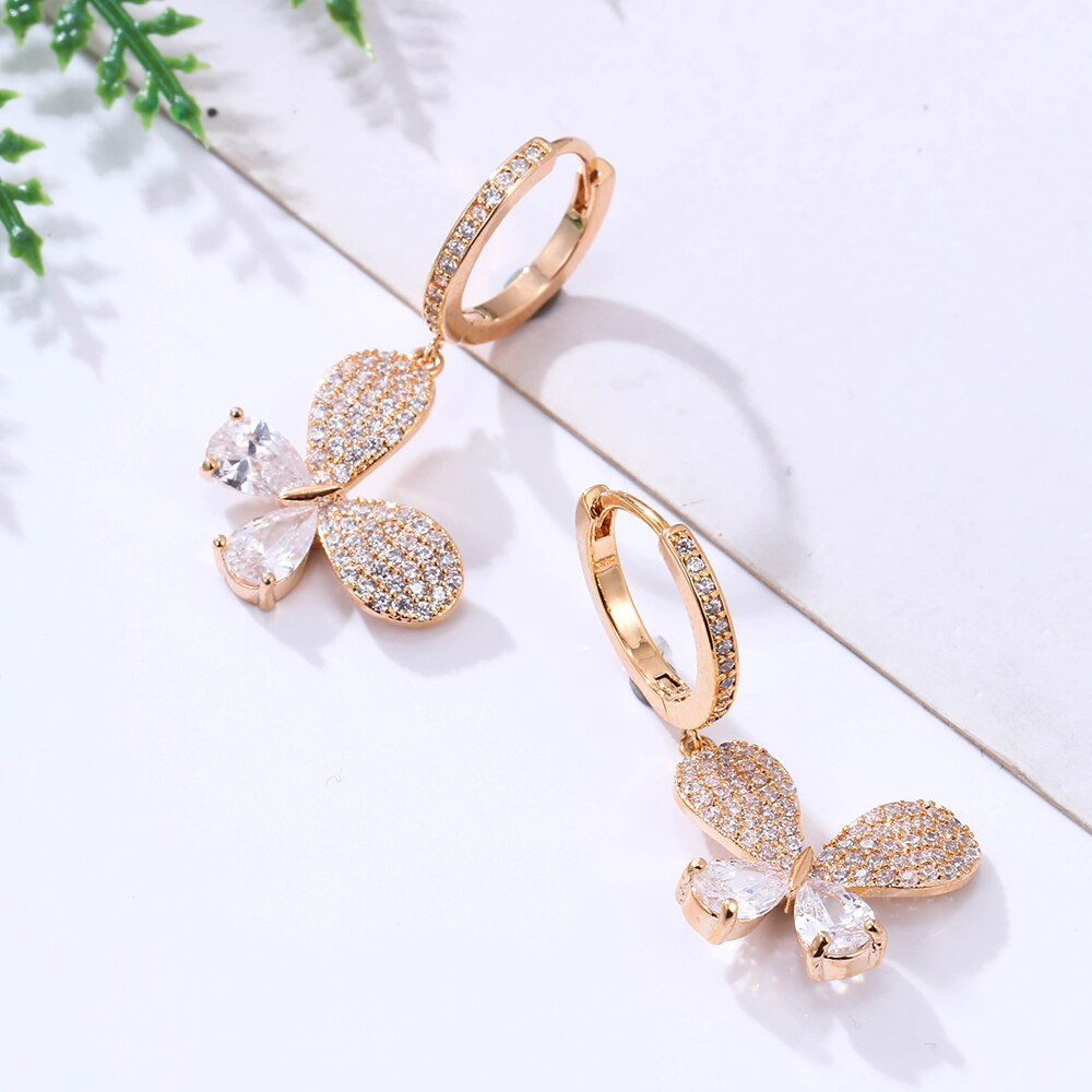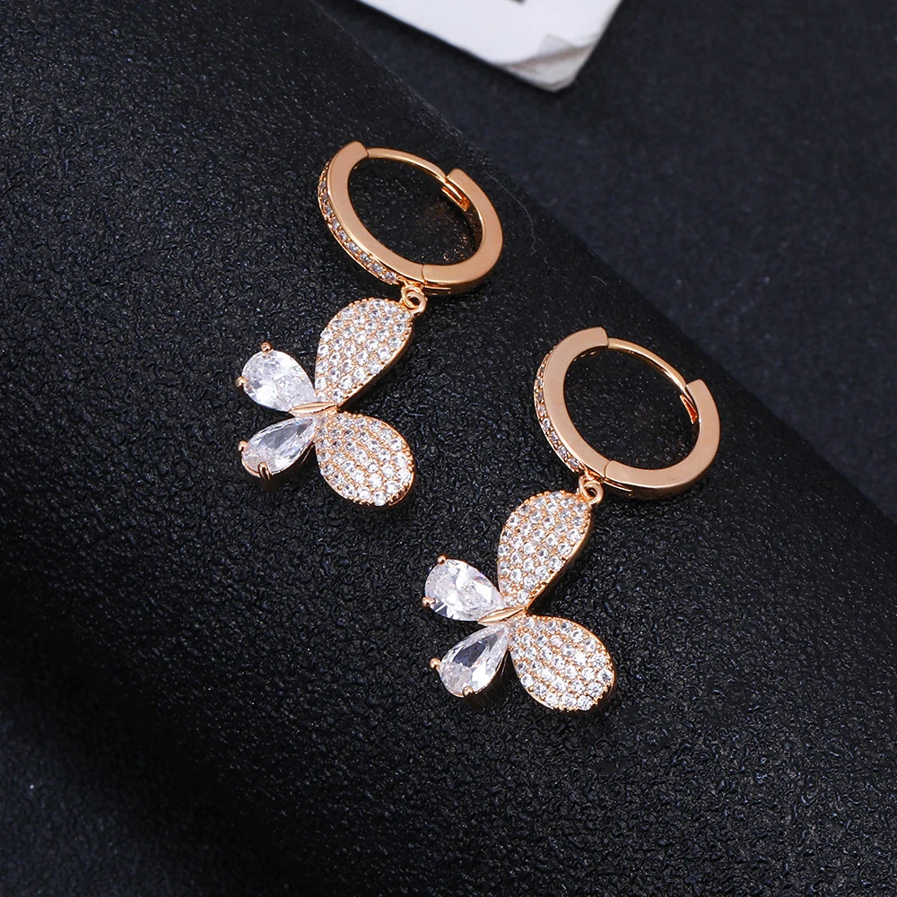 2022 CZ Zircon Butterfly Drop Earrings for Women Shinny Insect Charm Earring Trendy Jewelry Engagement Accessories