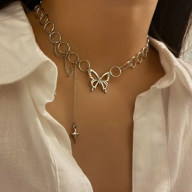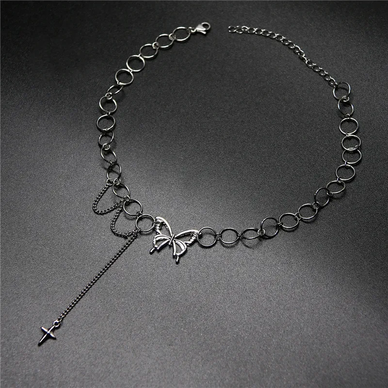 2022 Goth Hollow Butterfly Choker Necklace Statement Girlfriend Gift Cute Bicolor Chain Clavicle Necklace Jewelry For Women