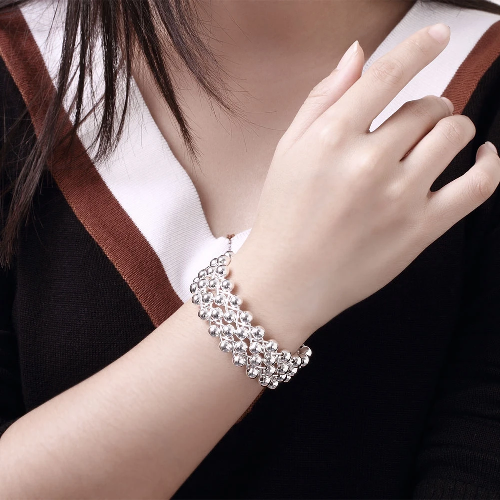2022 High 925 Stamp Silver Color Bracelets Round Bead Adjustable Women Fine Jewelry Bangles With Charms Christmas