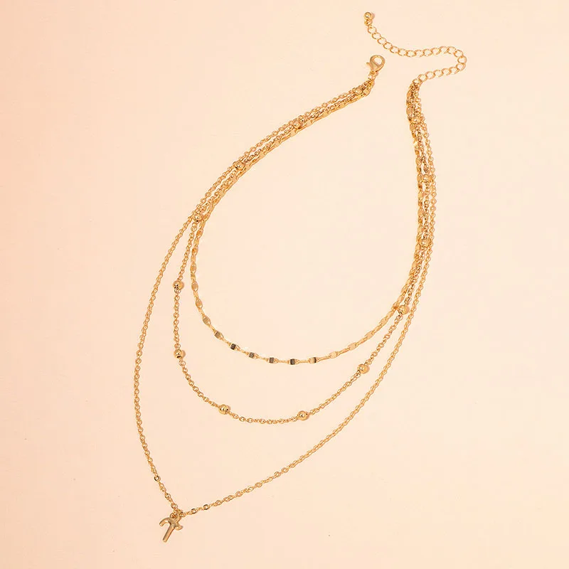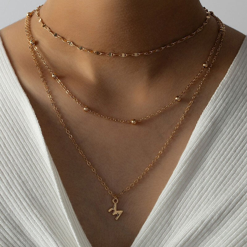 2022 Ins Gold Double Layers A M Letter Alphabet A-Z Initial Multi-layers Pendant Necklaces Trendy Korean Party Jewelry