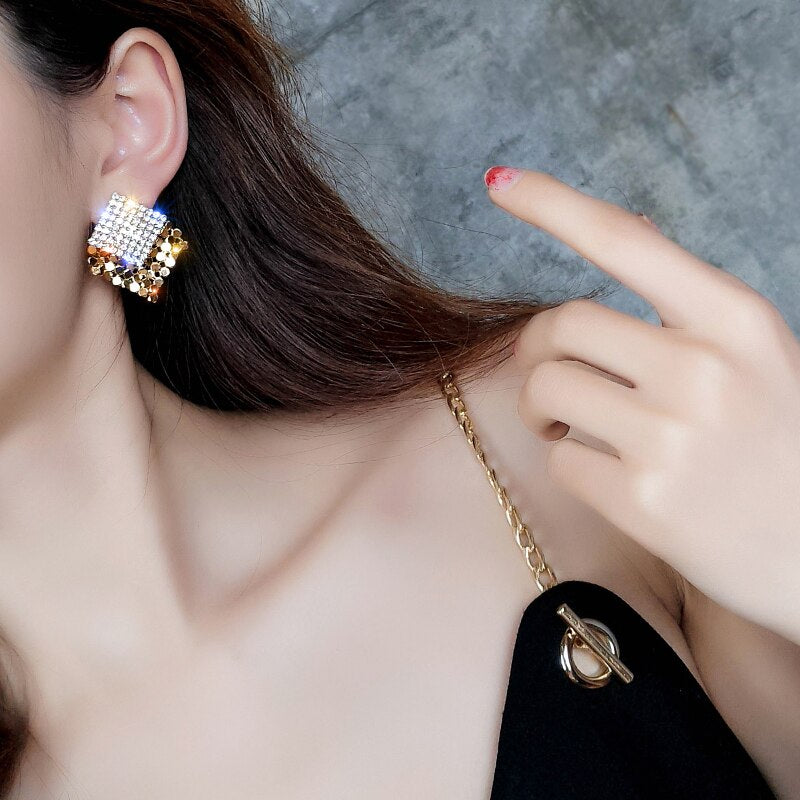 2022 jewelry simple square crystal stud earrings Golden metal earrings for Girls gift for woman