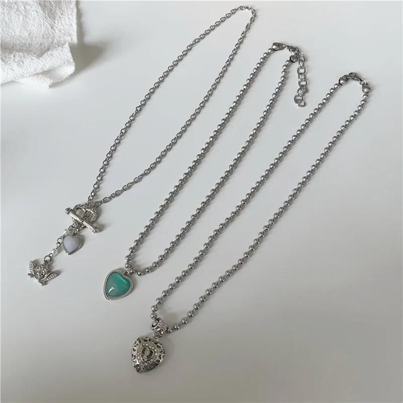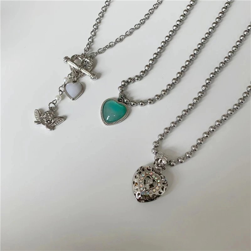 2022 Korea Angel Love Heart Hollow Out Pendant Necklace For Women Statement Rhinestone Toggle Clasp Necklace Jewelry