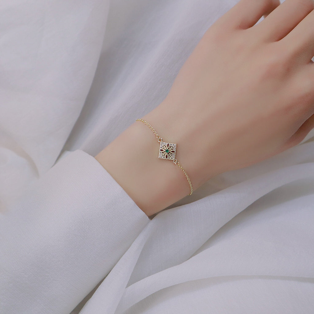 2022 Korean jewelry high-quality square copper inlaid zircon green simple gold female bracelet