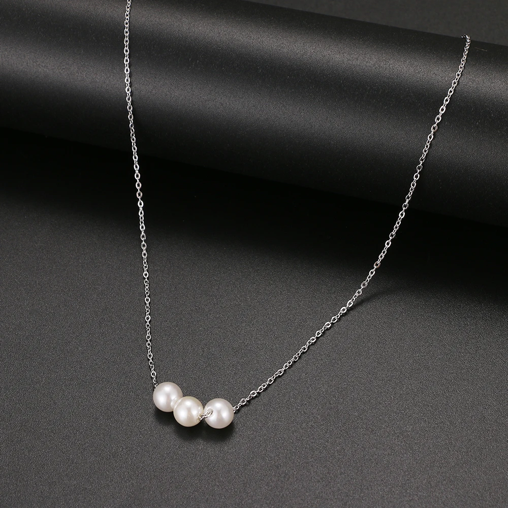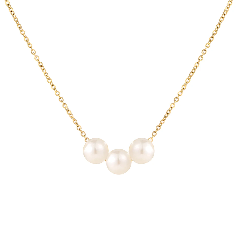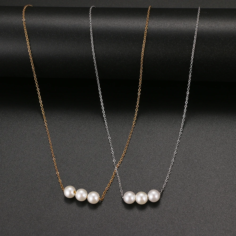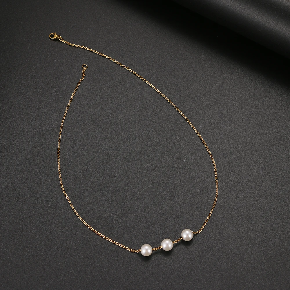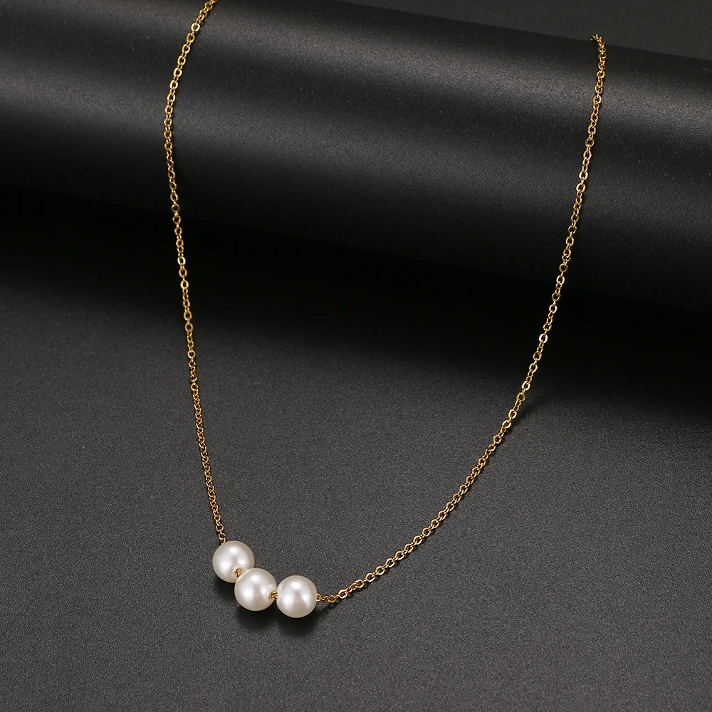 2022 Kpop Cute Three Pearl Choker Necklaces Stainless Steel Chain Necklace Pendant Party For Women Jewelry Girl Gift