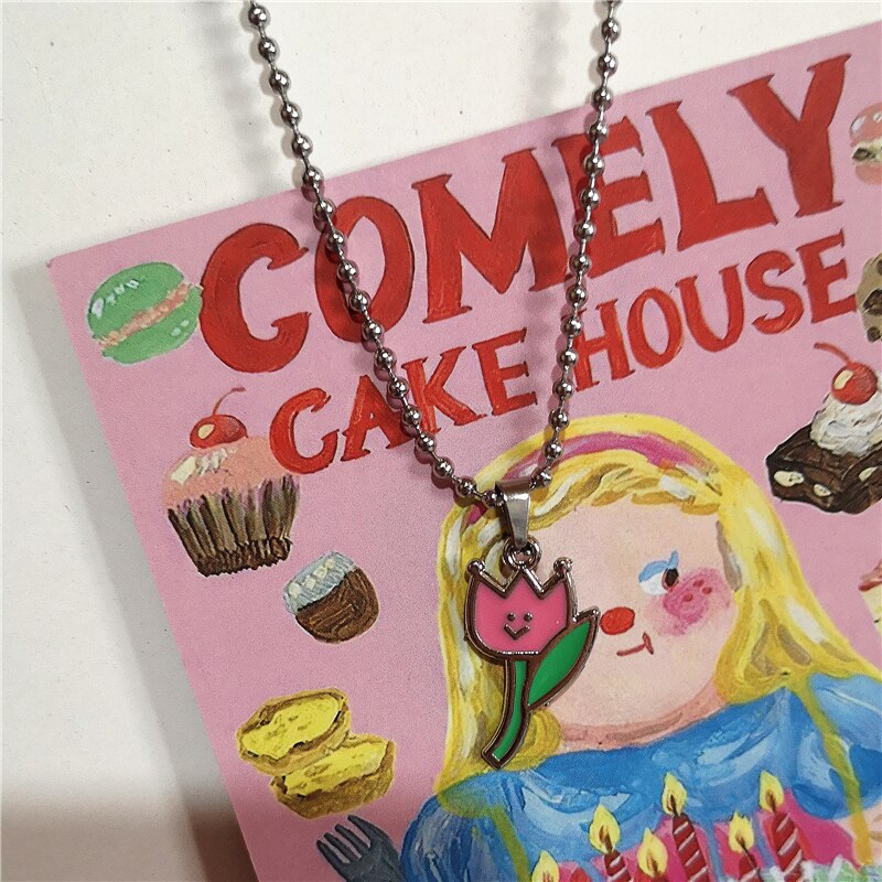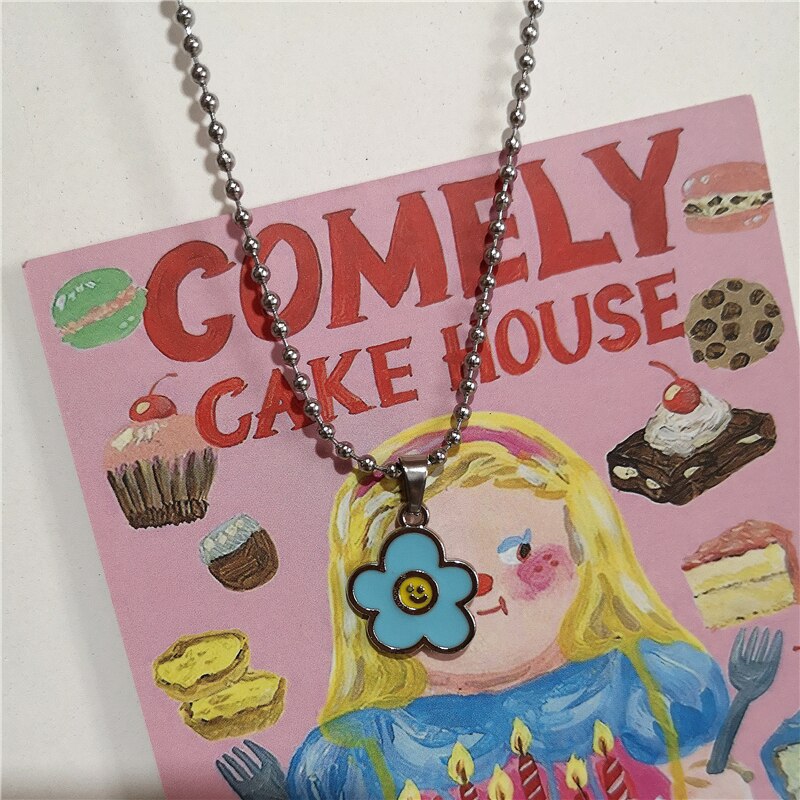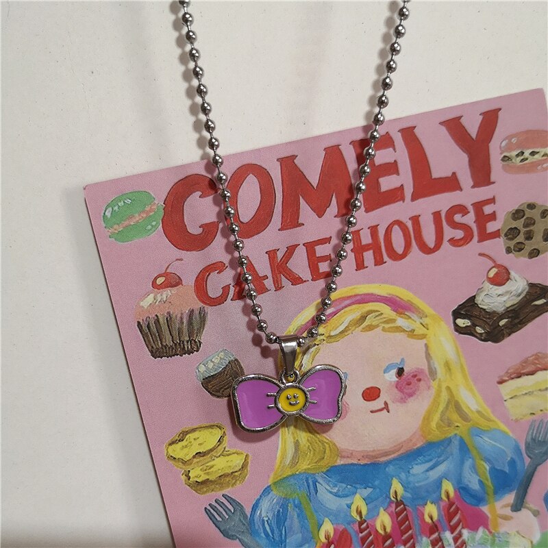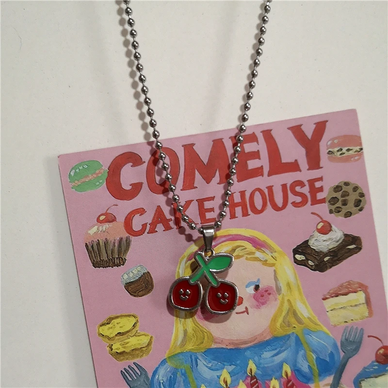 2022 Kpop Trend Round Bead Chain Cartoon Cherry Bowknot Butterfly Flower Pendant Necklace For Women Y2K Aesthetic Charm Jewelry