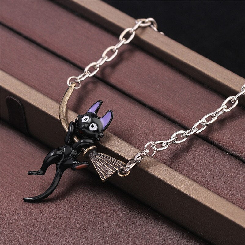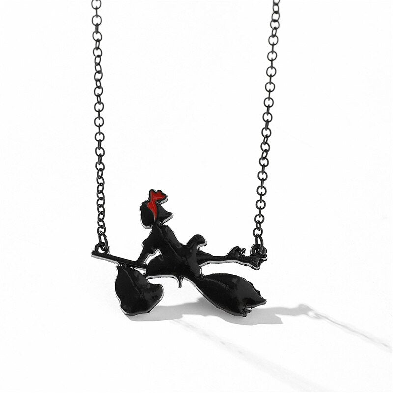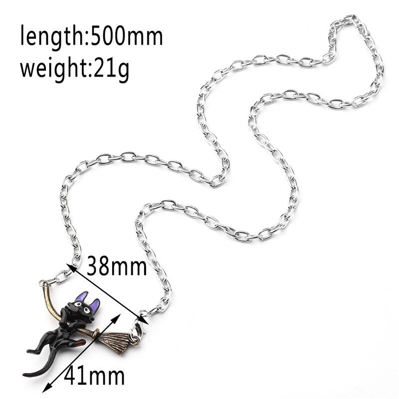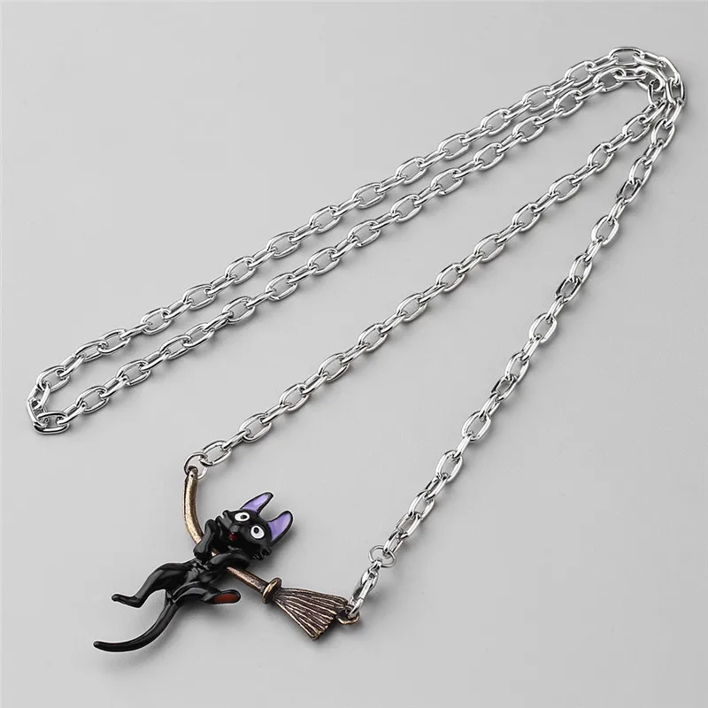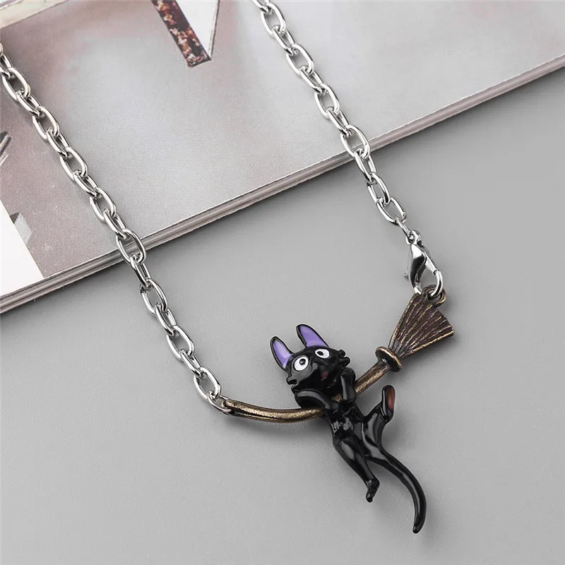 2022 Personality Enamel Jewelry Miyazaki Hayao Kiki's Delivery Service Black cat Broom Pendants Necklace