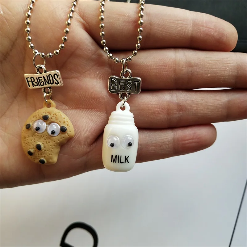 2022 Popular Cute Cookies Milk Cup Food Pendant Necklace Friends Men and Women Girls Couple Necklaces Birthday Gift Jewelry
