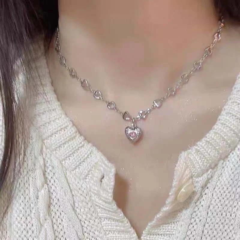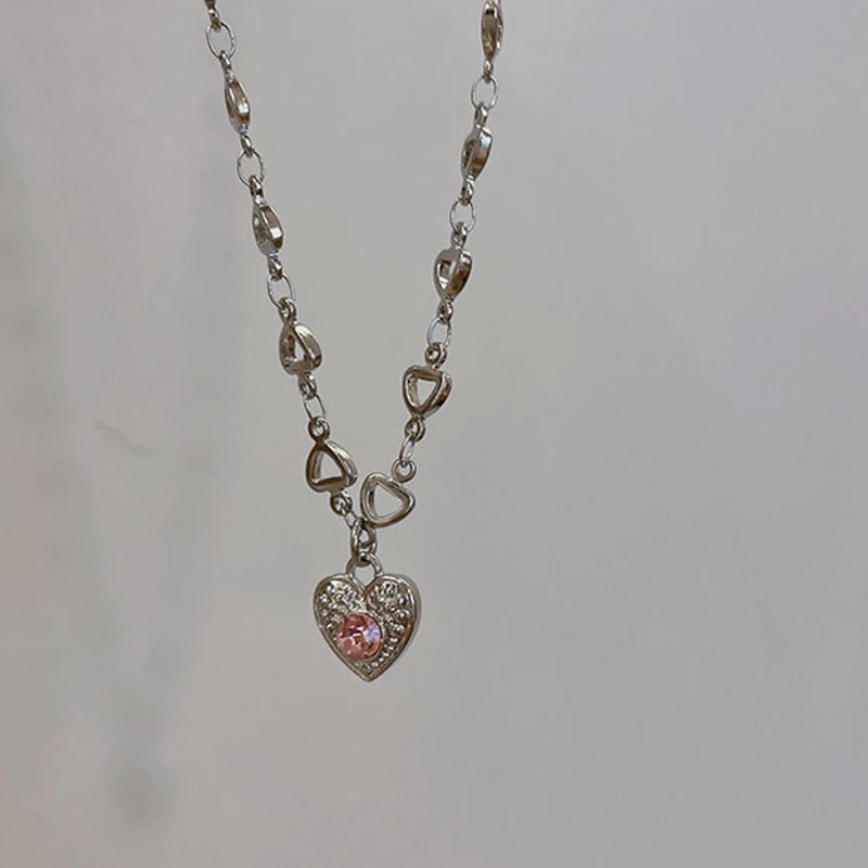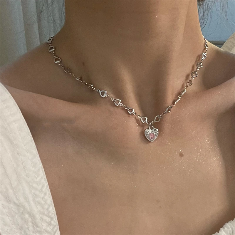 2022 Punk Pink Love Heart Pendant Short Necklaces for Women Goth Vintage Charm Choker Necklace Y2K Jewelry 90s Gifts