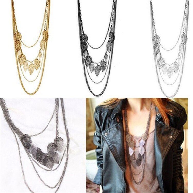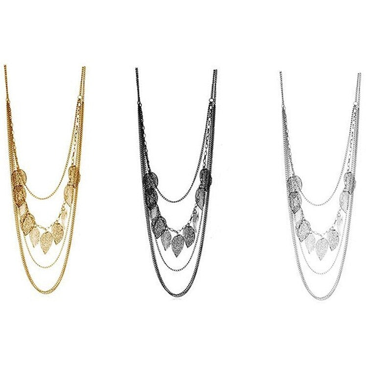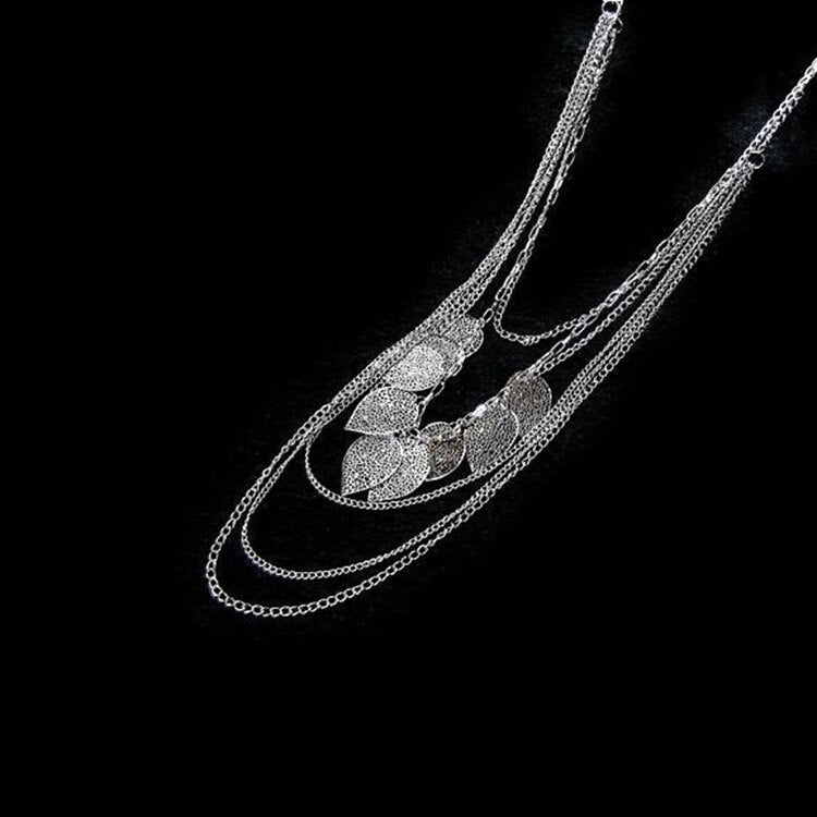 2022 Selling Bohemian Style Nightclub Item Jewelry Alloy Leaf Multilayer Sweater Chain for Women