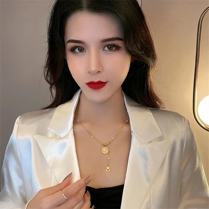 2022 Shell Stone Stainless Steel Gold Chain Pendant Necklace for Woman Exquisite Clavicle Chain Female Party Jewelry