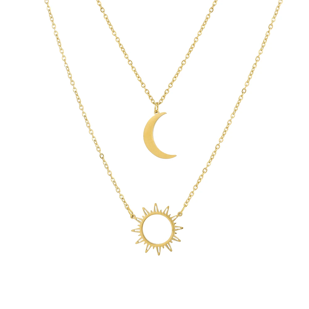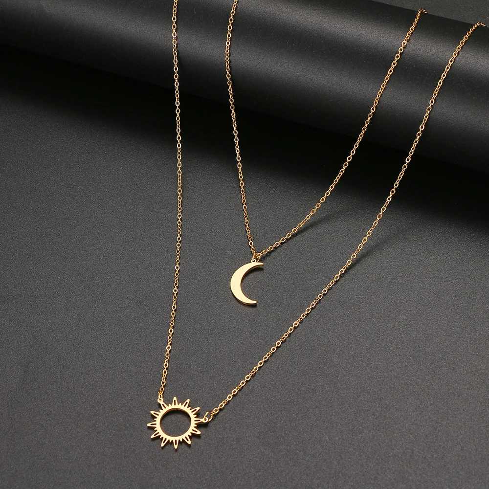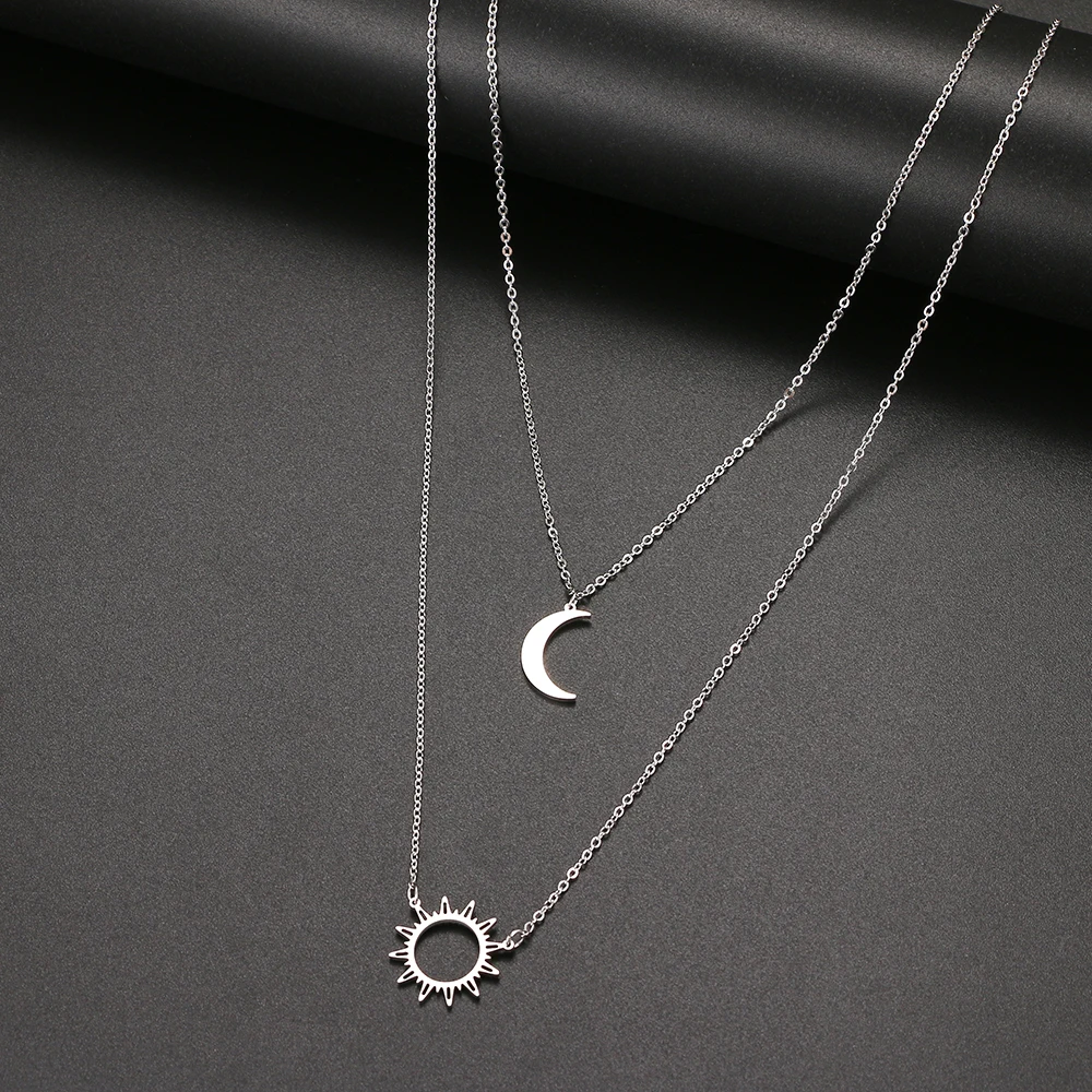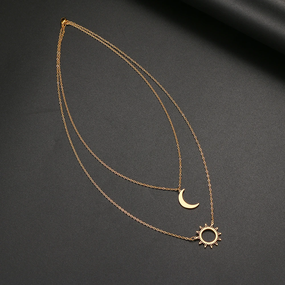 2022 Stainless Steel Layered Models Sun Flower Moon Necklace For Women Fashionable Exquisite Pendant Chain Party Friend Jewelry