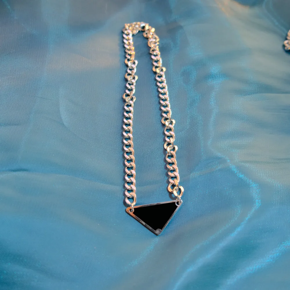2022 Trend Street Hip Hop Stainless Steel Thick Chain Triangle P Letter Pendant Necklace Big Name Design Men And Women Jewelry