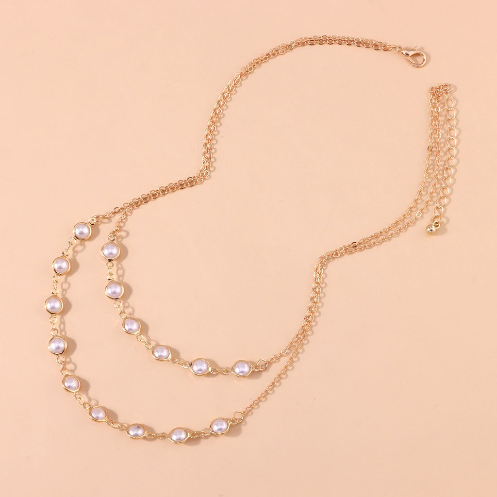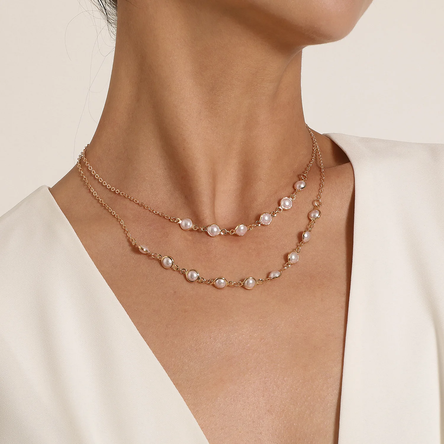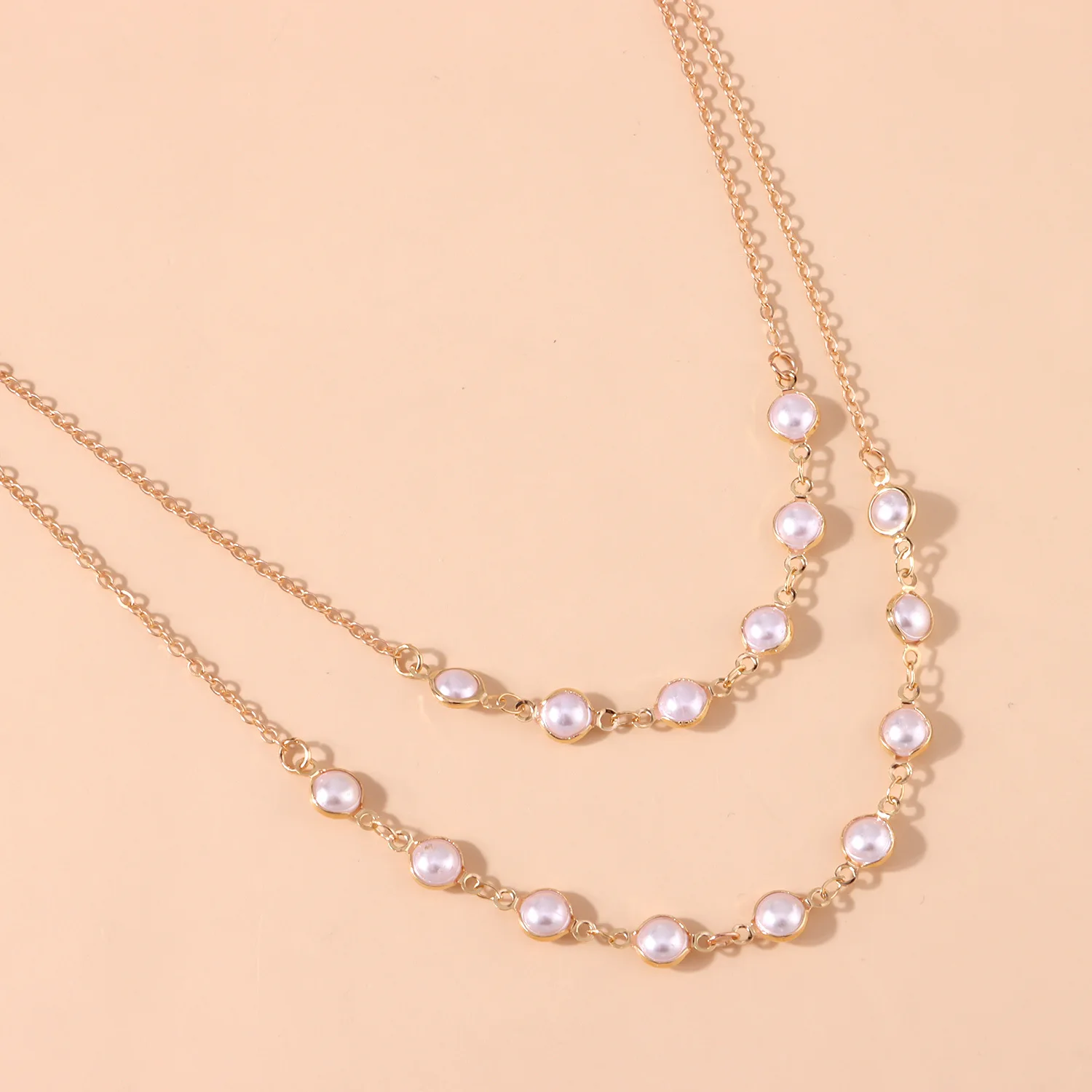 2022 Trendy Double Layer Pearl Necklace For Women Simple Clavicle Chain High Jewelry Choker Set Female Party Wedding Accessories