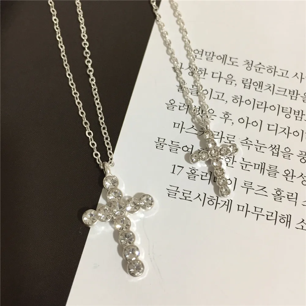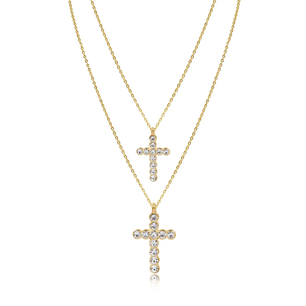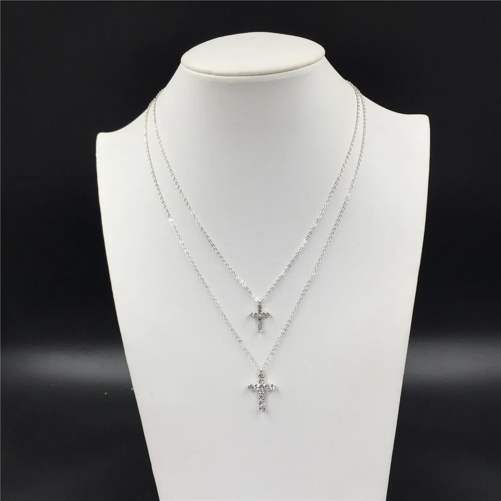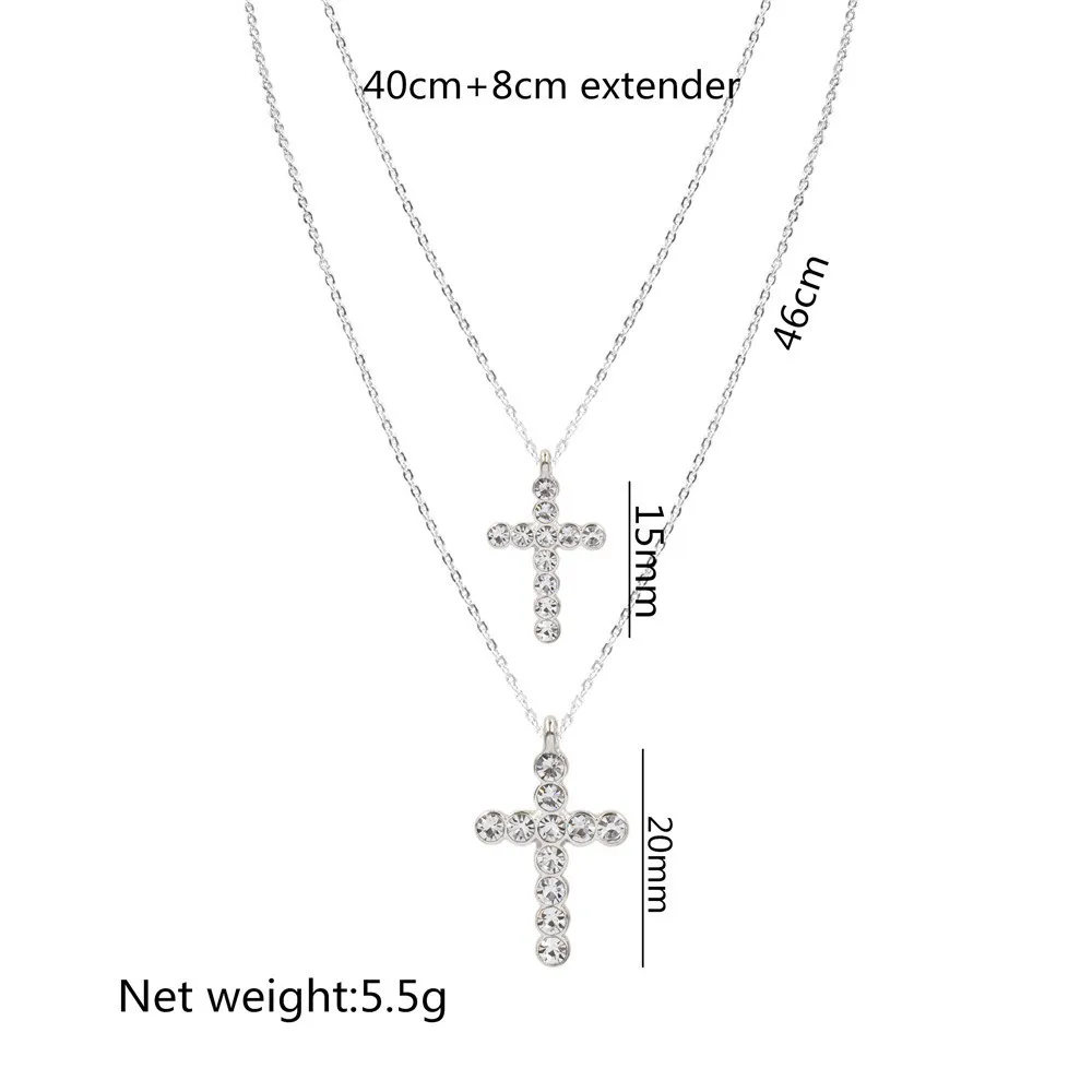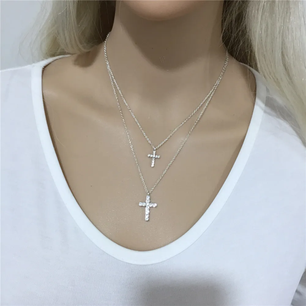 2022 Trendy Layered Necklace for Women Silver Color Chain Clear Glass Stone Cross Pendant Necklace Wedding Party Fashion