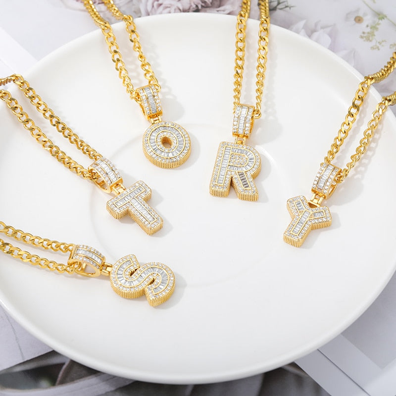 26pc Letter Initial A-Z Zircon Pendant Necklace for Men Iced Out Rock Sugar Hip Hop Charms Fantastic Jewelry Gift