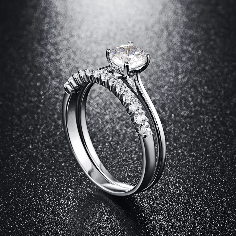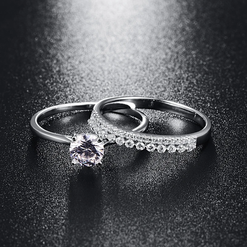 2Pcs Crystal Ring Fashion lover rings queen sterling silver ring For Women Birthd Gifts Y0066R