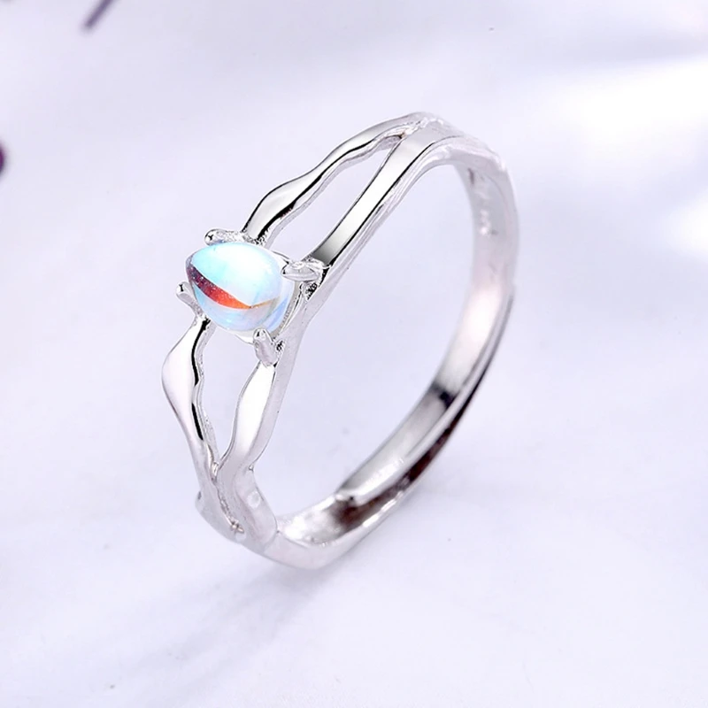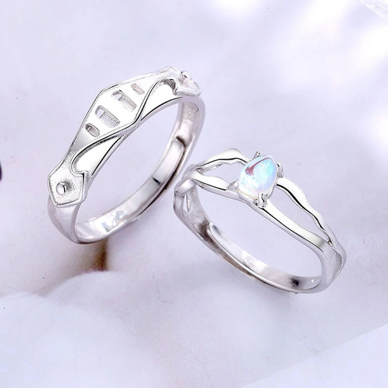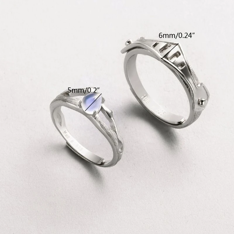2Pcs Moonstone Princess and Knight Lover Matching Open Band Rings Kit Couple Rings Wedding Promise Ring Set Adjustable