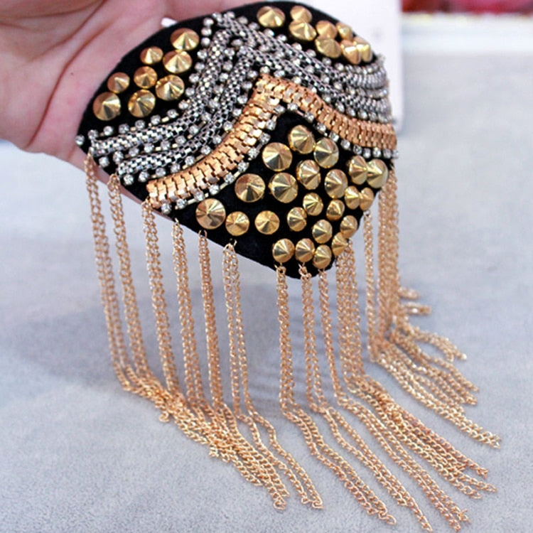 2Pcs Personality Stage nightclub hosted banquet shoulder jewelry epaulettes Retro small western assembled brooch tassel patch