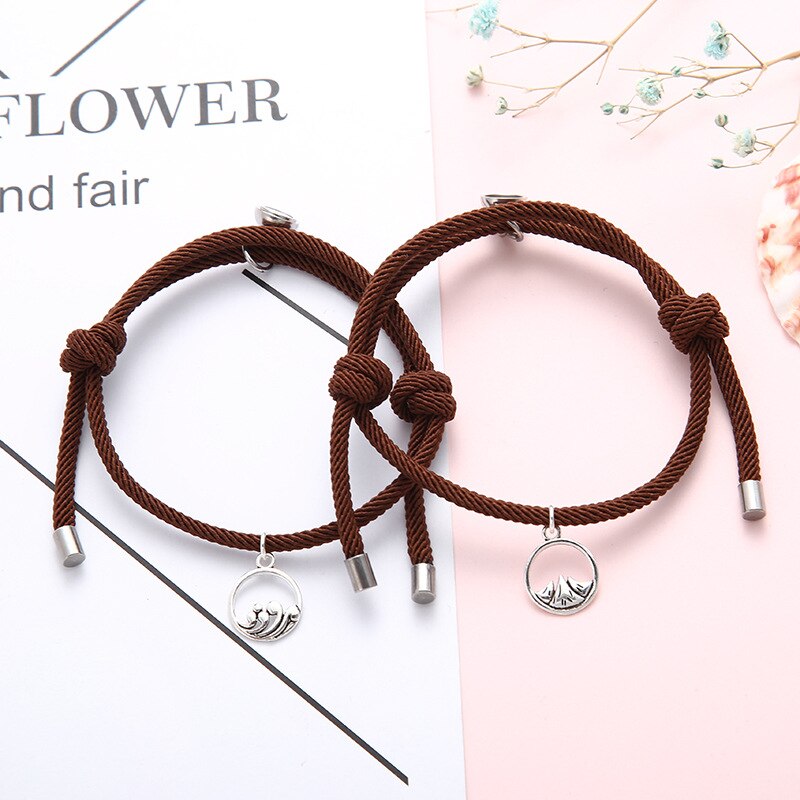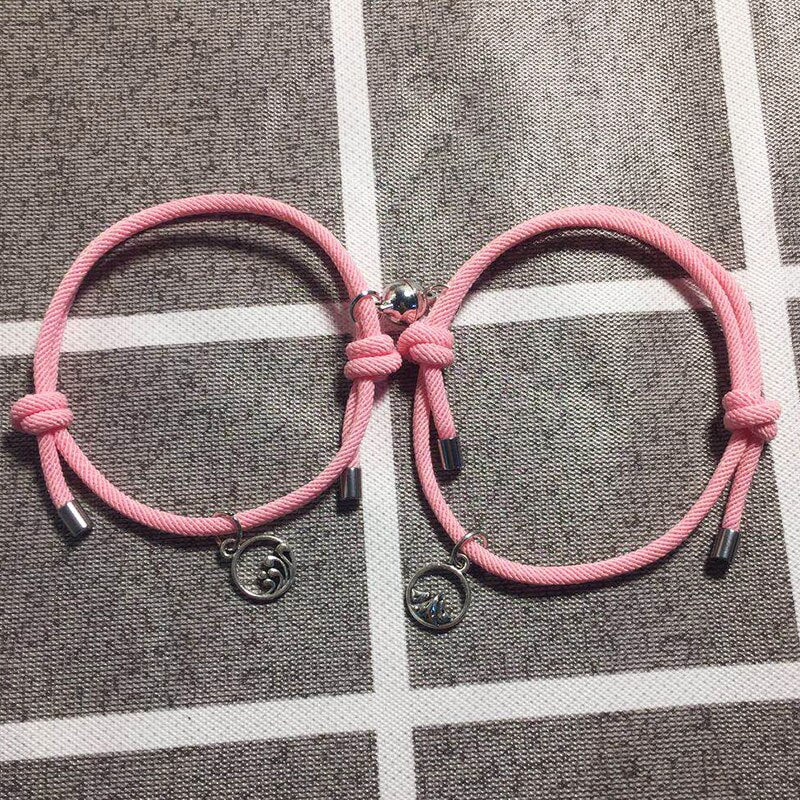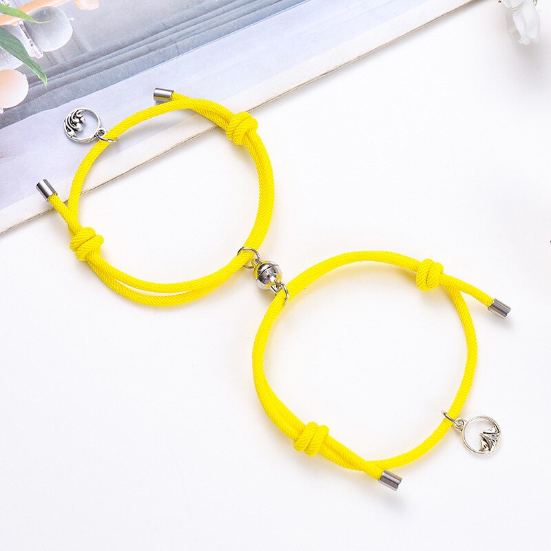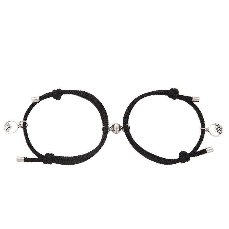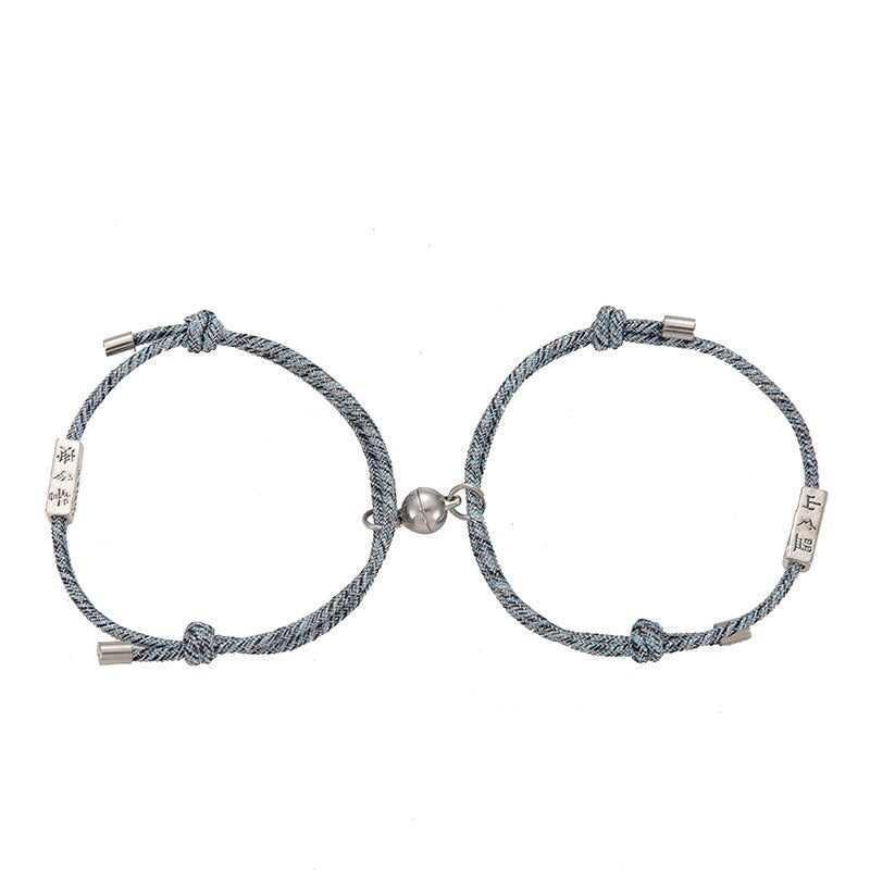 2PCS/Set Alloy Couple Magnetic Ball Bracelet Simple Creative Stainless Steel Friendship Rope Chain Couple Bracelet Jewelry Gift
