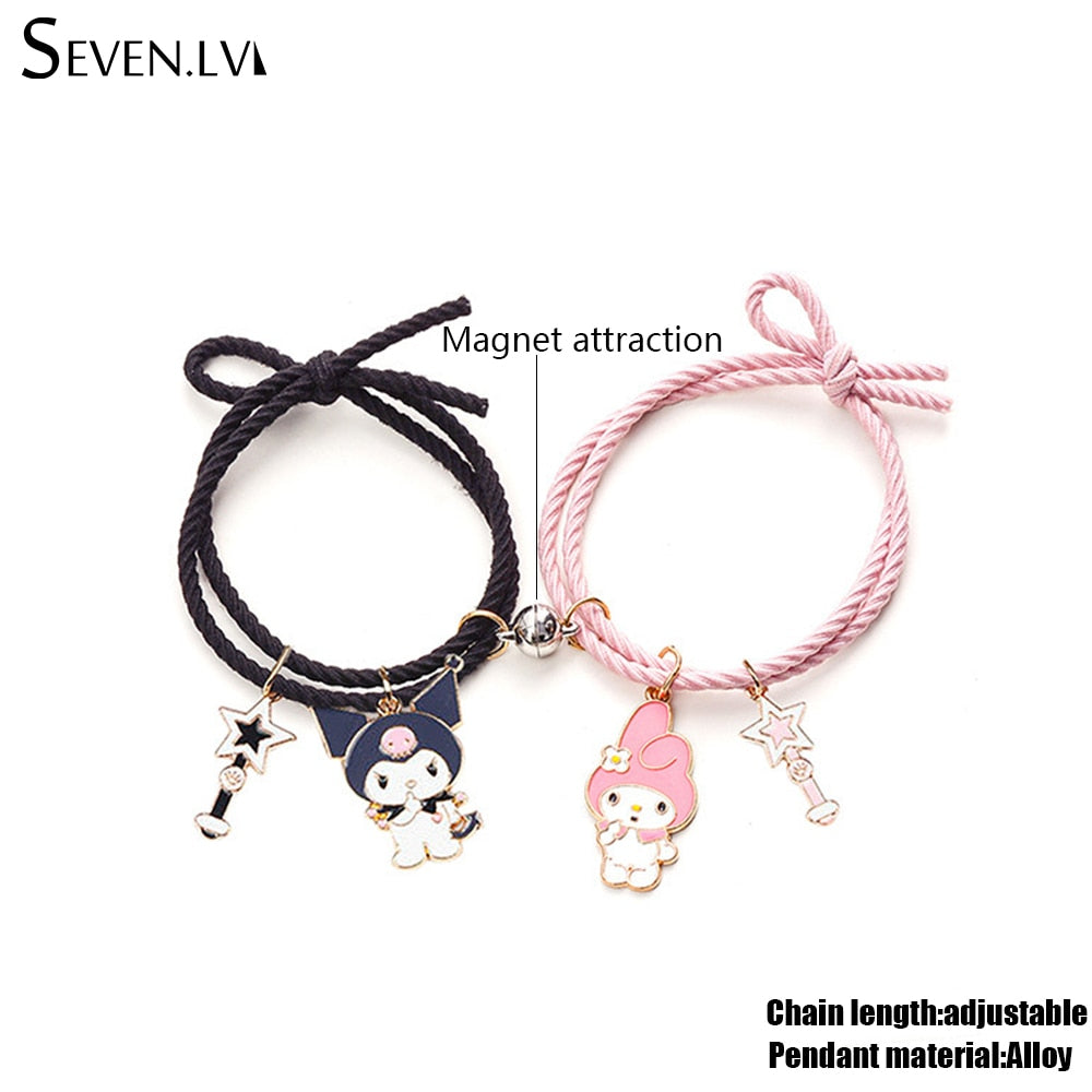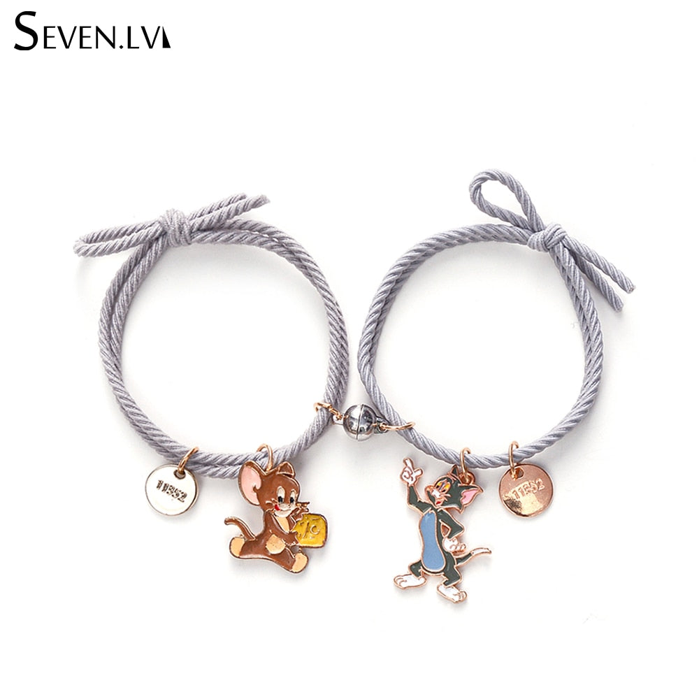 2pcs / set magnet attracts couple Bracelet cute cartoon Charm Jewelry adjustable elastic rope bracelets lover gift for women men