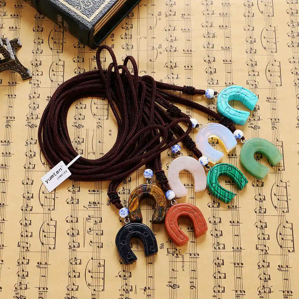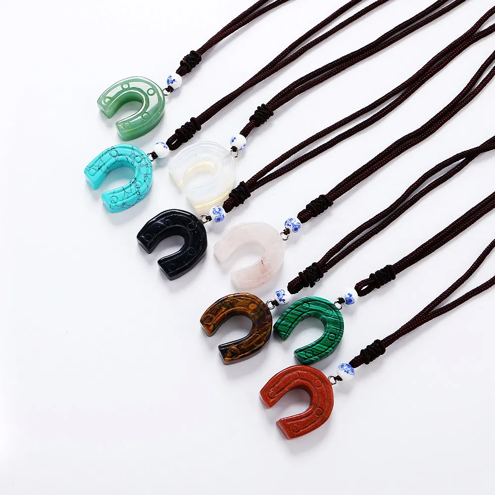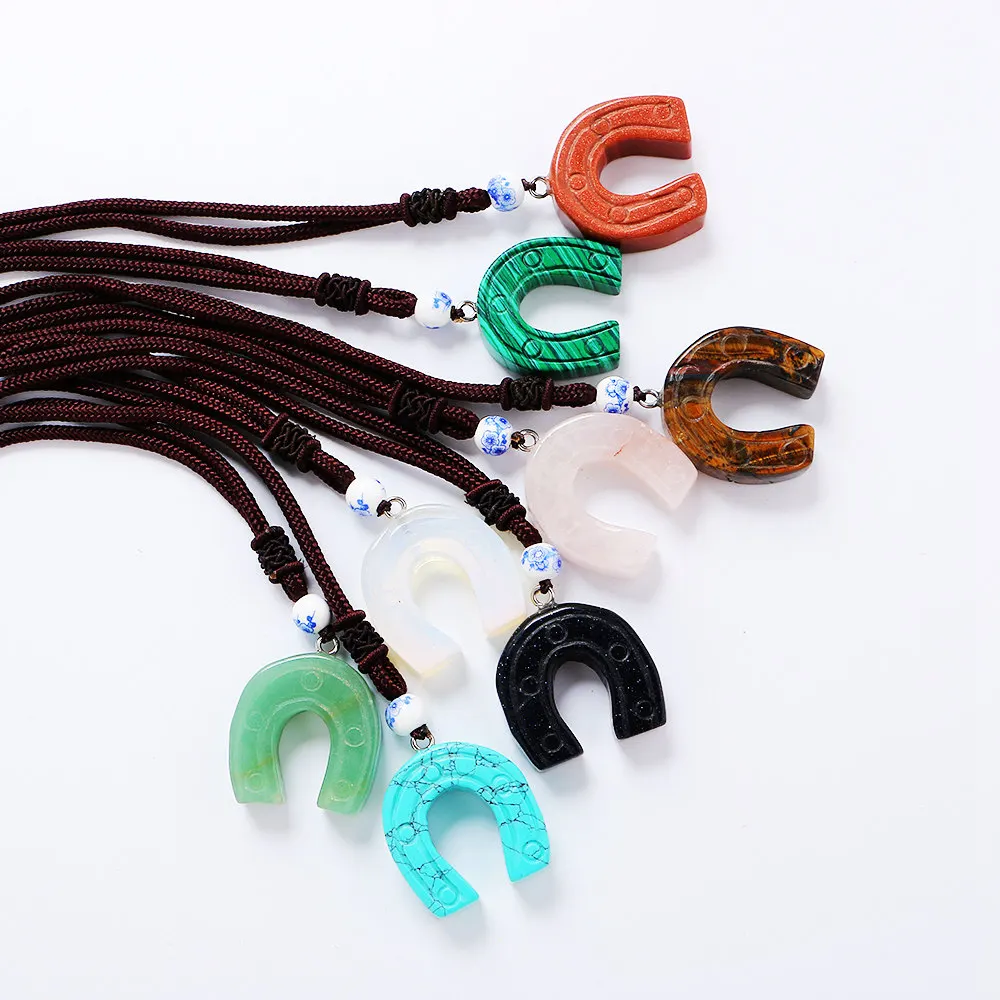 3.5 * 3.5CM Horseshoe Pendant Natural Emerald Stone Necklace Sapphire Fine Jewelry Jewelry World Of Warcraft Natural Gemstone DK