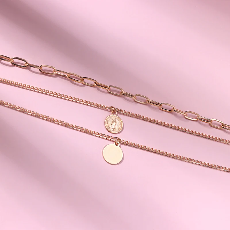 3 Pcs/set Gold Color Layered Choker Necklace Women Boho Chain Coin Necklace Female Pendant Jewelry Gift